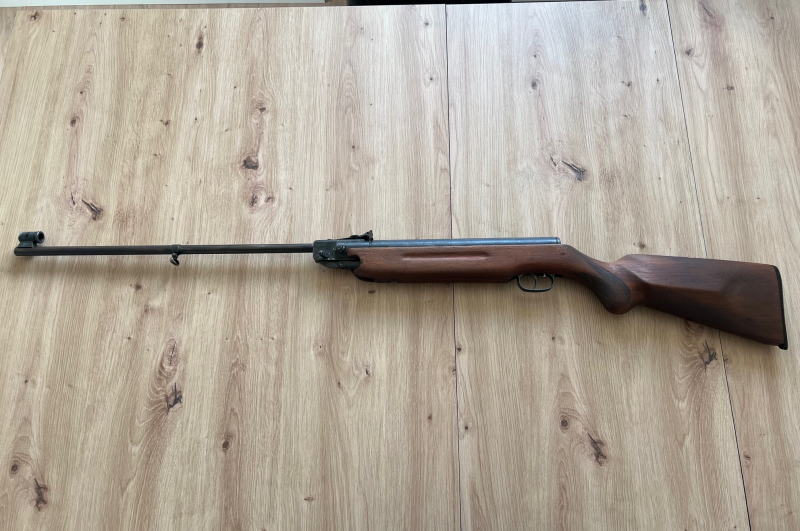 Zur Auktion steht hier ein Luftgewehr der Marke BURGO Modell Meisterschütze im Kaliber 4,5 mm (.177). Hersteller dieses Luftgewehres ist die Firma Weihrauch und es entspricht 1:1 dem allseits bekannten Weihrauch Modell HW 35. Das Luftgewehr ist Nummerngleich. Die Seriennummer lautet: 130482. Die letzten fünf Ziffern sind ebenfalls auf der Unterseite im Bereich des Laufes eingeschlagen 30482 (siehe Bild). Das Luftgewehr hat kein F im Fünfeck. Da es jedoch vor dem 01.01.1970 in der BRD hergestellt und in den Handel gebracht wurde, ist dieses Luftgewehr freiverkäuflich ab 18 Jahren. Der Druck ist sehr gut und es schießt sehr präzise. Der Lauf ist spiegelblank, die Züge und Felder sind klar erkennbar. Die originale Laufdichtung aus Leder wurde durch eine Laufdichtung aus Kunststoff ersetzt. Sowohl Leder- als auch Kunststoffdichtungen sind als Ersatzeile im Internet noch sehr gut zu bekommen. Da dieses Gewehr 1:1 dem Weihrauch HW 35 entspricht, können hier dementsprechend alle HW 35 Ersatzteile verwendet werden. Das Gewehr weist altersentsprechende Gebrauchsspuren auf. Der hintere Riemenbügel fehlt leider, ansonsten ist alles vorhanden: Micrometervisierung, Korntunnel mit Kornblatt, einstellbarer Rekord-Abzug, originaler Holzschaft mit bayrischer Backe, Fischhaut am Pistolengriff etc. Technisch befindet sich das Gewehr in einem einwandfreien Zustand. Die Firma “Karl Burgsmüller” hat unter dem Handelsnamen “BURGO” bis in die 1980er Jahre hinein u. a. Druckluftwaffen vertrieben, die z.B. von den Firmen “Weihrauch” und “B.S.F. - Bayrische Sportwaffenfabrik” hergestellt wurden.