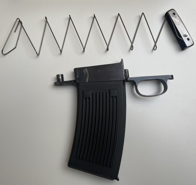 Biete das abgebildete Grabenmagazin für K98. Ersichtliche Abnahmestempel auf Magazinkasten, WaA221 und WaA749 mit Waffennummer 3916d. WaA221 Hermann Köhler Altenburg Thüringen Herstellercode e - WaA749 Herstellercode 337 für Berlin Suhler Waffenwerke (1940) bzw. Gustloff Werke Herstellercode bcd (1941-1944). Ersichtliche Abnahmestempel Magazin, BSW 1938 WaA4 für Berlin Suhler Werke. Da es sich um ein starres Magazin handelt welches fest mit dem Magazinkasten verschweißt ist und dieser durch 2 Schrauben fest am System verschraubt wird stellt es somit kein Wechselmagazin in dem Sinne da und ist als solches Regelkonform.