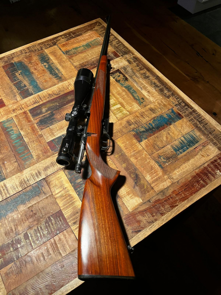 Zum Verkauf steht eine BRNO, CZ 527 im Kaliber 22 Hornet. Die Waffe verfügt über ein herausnehmbares Magazin, eine zwei Stellungssicherung und einen deutschen Stecher. Die Waffe zeigt geringe Gebrauchsspuren. Die Kimme wurde entfernt. Bei dem Zielfernrohr handelt es sich um ein Kahles, Helia 7x56, Abs 1, Das Zielfernrohr zeigt am Rohrkörper Gebrauchsspuren. Die Linsen sind ohne Beschädigungen und Kratzer. Die Durchsicht ist klar und deutlich. Montiert ist das Glas mittels einer Aufschubmontage.