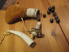 Kugelbeutel aus Leder, handgenäht, Tülle und Stopfen aus Hirschhorn gefertigt, Tülle handgraviert. Länge 20,5 cm, für Rundkugeln bis incl. cal.54, + superschönes olstyle Pulvermaß aus Hirschhorn, verschnitten und verziert, Länge 14 cm, ca. 50 grn. Replikat des 18. Jahrhunderts ECHTE HANDARBEIT !! DAS ULTIMATIVE WEIHNACHTSGESCHENK FÜR DEN REENACTOR !!!!