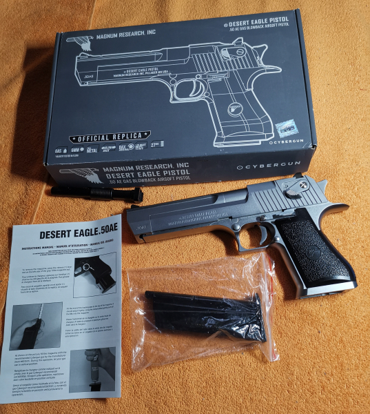 Zum Benutzen der Desert Eagle .50AE Pistole werden noch 6mm BB Rundkugeln und 12g CO2 Kapseln benötigt.