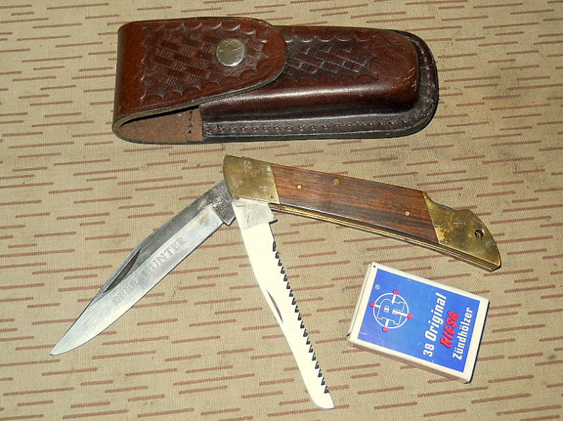 Artikelbeschreibung: ... soliedes, jagdliches Klappmesser/Taschenmesser mit Säge ... von WICHO Mod. „Deer-Hunter“ inkl. Lederholster ... gebrauchter, guter Zustand