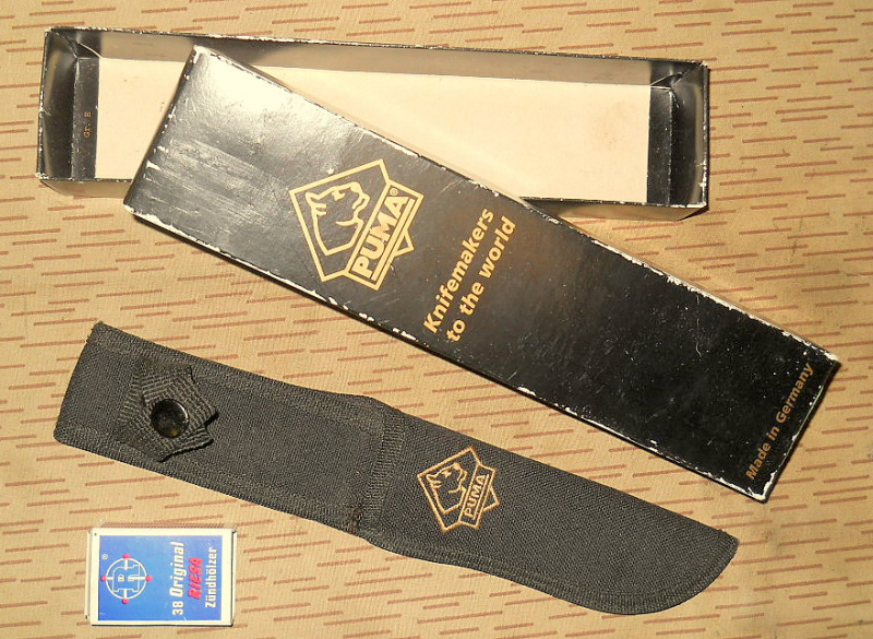 Artikelbeschreibung: ... Scheide + original Karton ... für Sammlermesser PUMA Mod. White Hunter II (laut Beschriftung des Vorbesitzers - keine Garantie) ... gebrauchter, recht guter Zustand