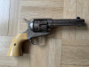 Aus Sammlung steht hier folgende Waffe zum Verkauf: Revolver COLT Single Action Army im Kaliber .41 Colt der 1. Generation, Baujahr 1904. Der Revolver in Luxusausführung ist vernickelt, hat eine sehr schöne Gravur und die klassische 4 3/4” Lauflänge. Rundum sehr schöner Zustand, das Nickelfinish zu ca. 99 % erhalten, wenige Gebrauchsspuren. Keine technischen Mängel und einwandfreie Funktion. Lauf innen blank mit vereinzelten Ablagerungen, scharfe Züge, Note 2+. Die Griffschalen sind Zeitgenössisch, keine Neufertigung. Der Revolver hat keine Fremdstempel, deshalb nur an Sammler, Händler oder Export.