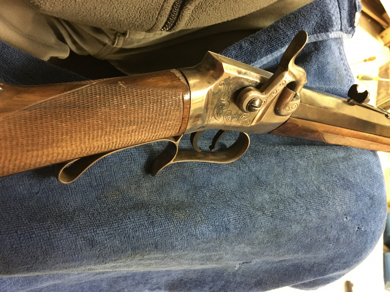 Zur Auktion steht eine frühe Wesson Rifle in Caliber .50 - die angebotene Waffe stammt aus deren ersten Produktionsjahren, noch ohne falsche Mündung. Sehr schönes Schaftholz mit scharfer Fischhaut an Vorder- und Hinterschaft, Lauf mit scharfen Feldern und Zügen. Auf ausdrücklichen Wunsch kann die Waffe mit abgenommenem Hinterschaft versendet werden.