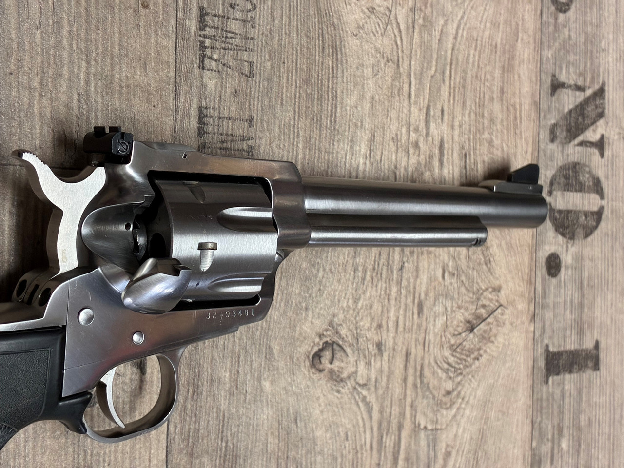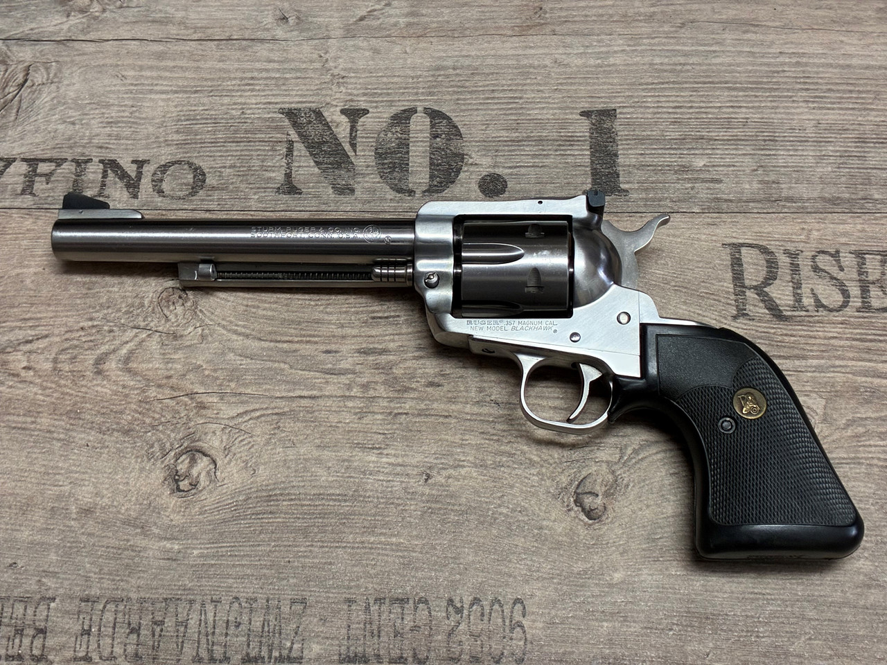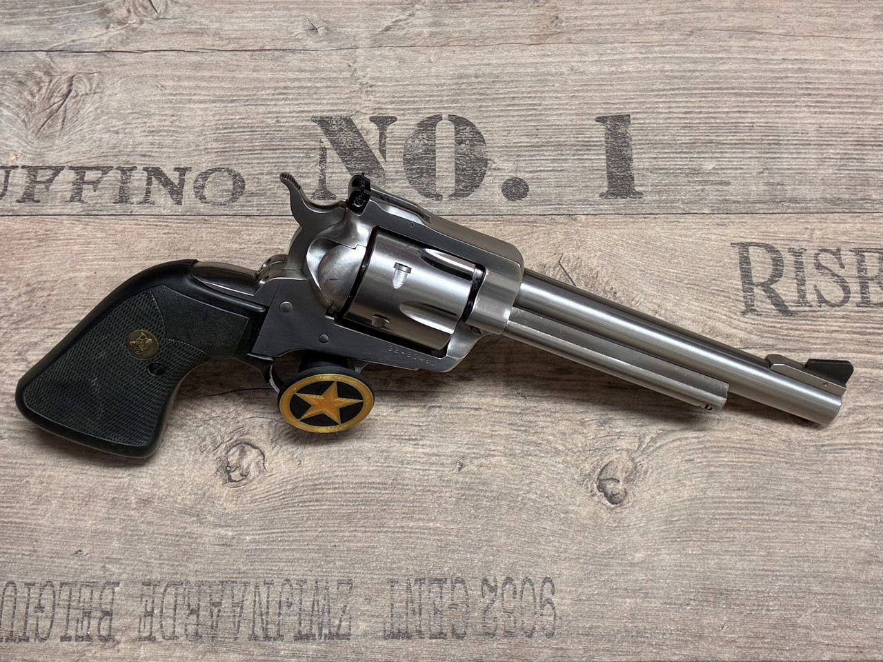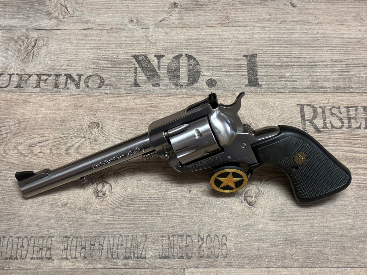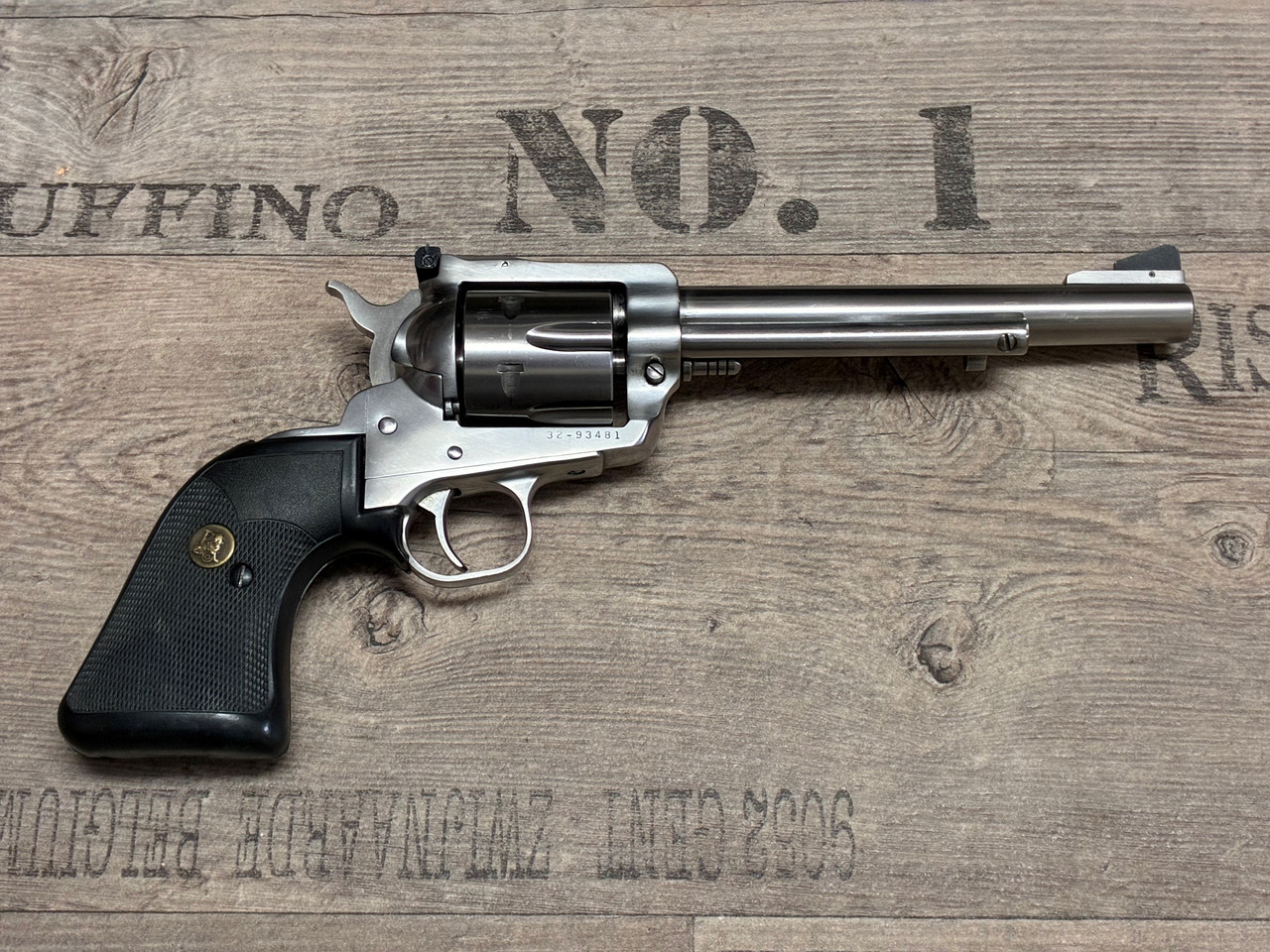 Zum Verkauf steht ein Ruger New Model Blackhawk, ein hochwertiger und zuverlässiger Single-Action-Revolver im klassischen Western-Stil.