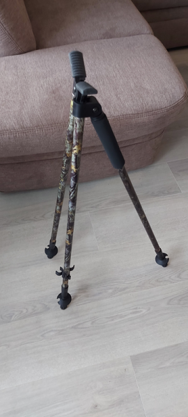 Dreibeiniger teleskopischer Schießstock.Leicht zu transportierender Schießstock im Tarndesign. Optimale Einstellung durch die teleskopische Ausführung. Gummifuß ideal für normales Gelände und Stahlspitze für steiniges Terrain. Breite, gummierte und drehbare Waffenablage. Höhe:Ca 85 - 190 cm. Transportlänge:Ca 85 cm. Gewicht: Ca850 g.