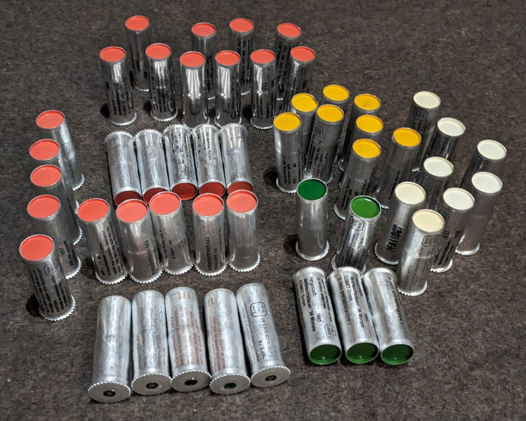 Vor einiger Zeit hatte ich die Munition mit zu einem behördlichen Übungsvorhaben genommen. Dort stand eine massive Waffe (Leinenwerfer Kal.4) mit etwas größerem Patronenlager zur Verfügung. Die Patronen wurden mit Kraft in den Lauf eingeführt und konnten sämtlichst verschossen werden. Leider war es immer nur möglich mal einen oder zwei Schuss abzugeben. Die Hülsen wurden dann mittels Stab herausgedrückt.