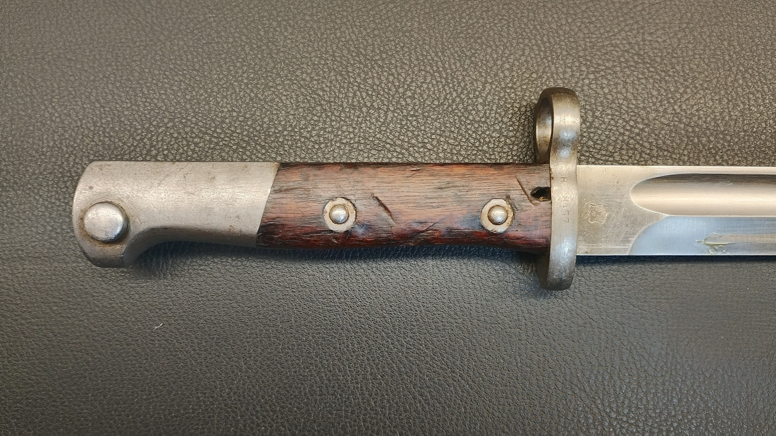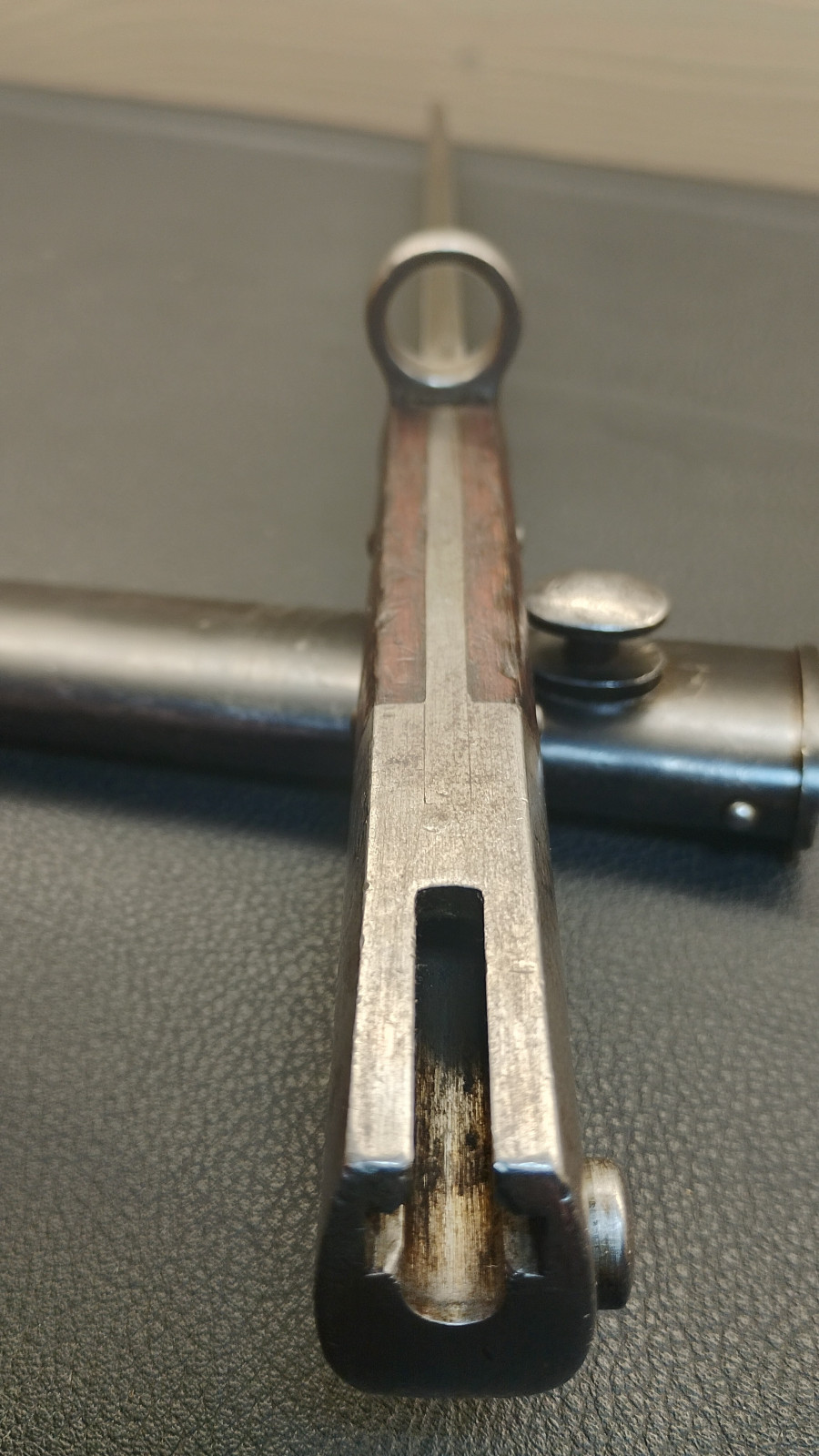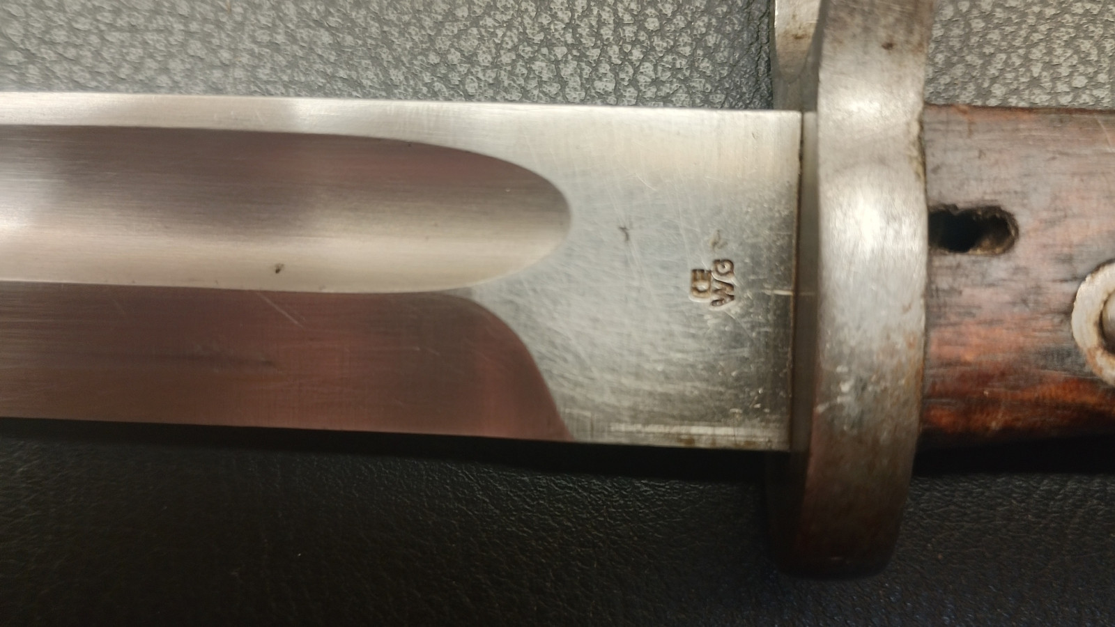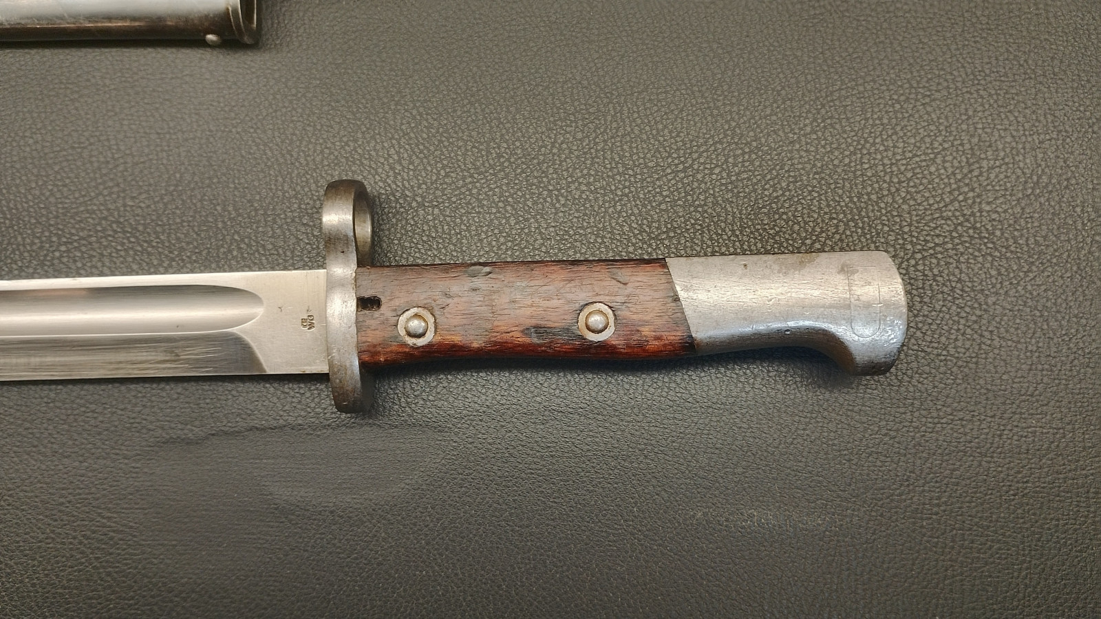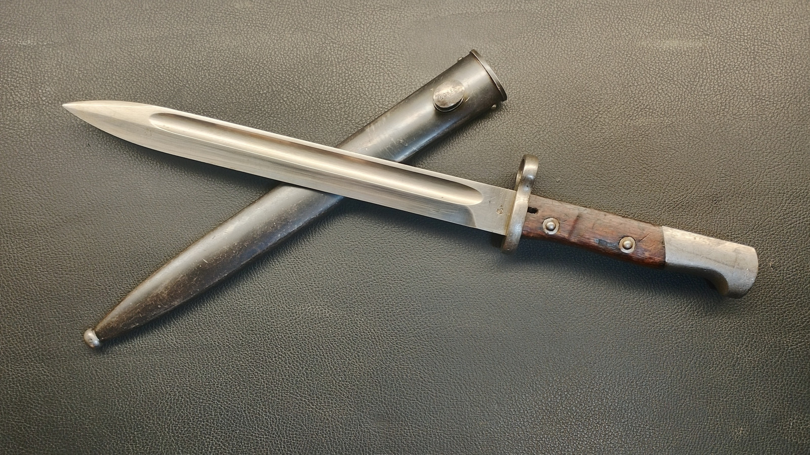 Verkaufe aus meiner Sammlung : Chile Bajonett Mauser 1912 ; Klingenspitze leicht nach rechts gebogen siehe Bilder ,Ich habe versucht es bestmöglich zu fotografieren ; Klingenlänge ca 25 cm ; Gesamtlänge ohne Scheide ca 38,5 cm ; Klinge mit OE WG . Erhaltungszustand ist Ansichtssache . Bitte schätzen Sie den Zustand des angebotenen Artikels anhand der Bilder selbst ein . Bilder sind Gegenstand der Auktion ,,,,,,,,,,,,,Viel Spass beim Bieten