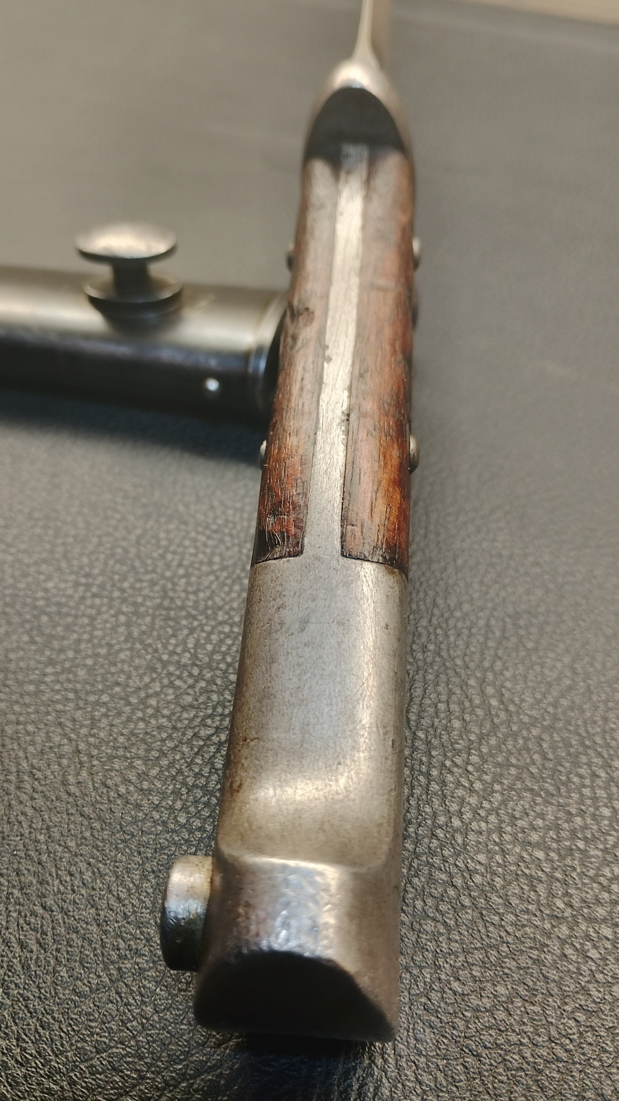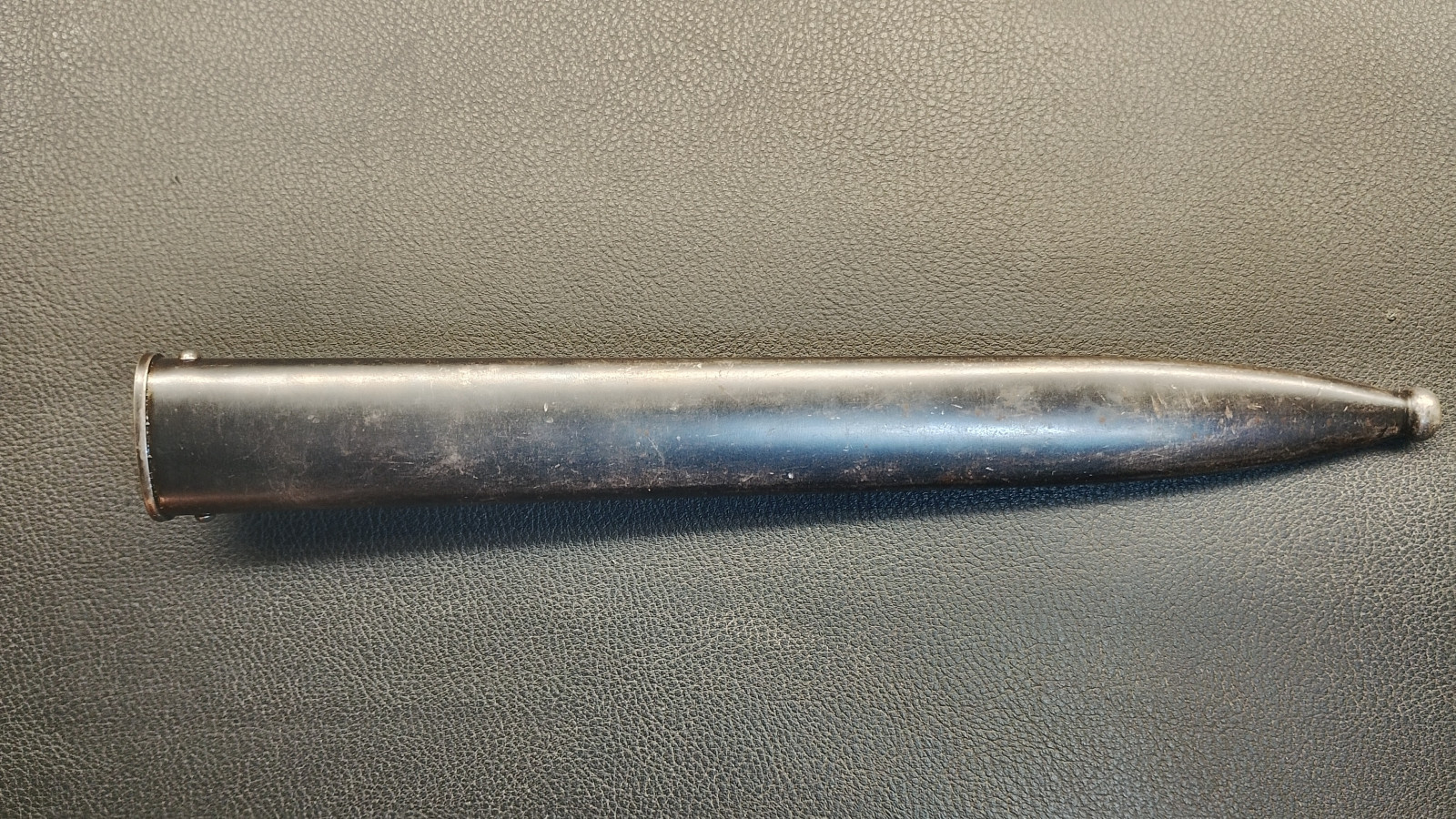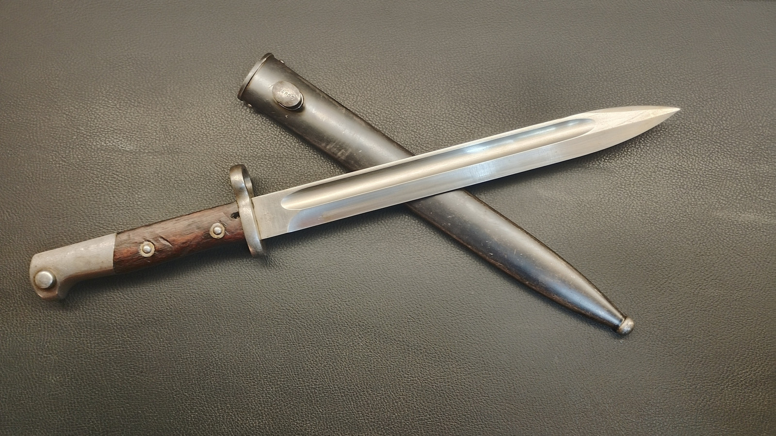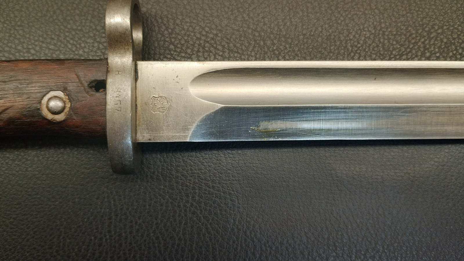 Verkaufe aus meiner Sammlung : Chile Bajonett Mauser 1912 ; Klingenspitze leicht nach rechts gebogen siehe Bilder ,Ich habe versucht es bestmöglich zu fotografieren ; Klingenlänge ca 25 cm ; Gesamtlänge ohne Scheide ca 38,5 cm ; Klinge mit OE WG . Erhaltungszustand ist Ansichtssache . Bitte schätzen Sie den Zustand des angebotenen Artikels anhand der Bilder selbst ein . Bilder sind Gegenstand der Auktion ,,,,,,,,,,,,,Viel Spass beim Bieten