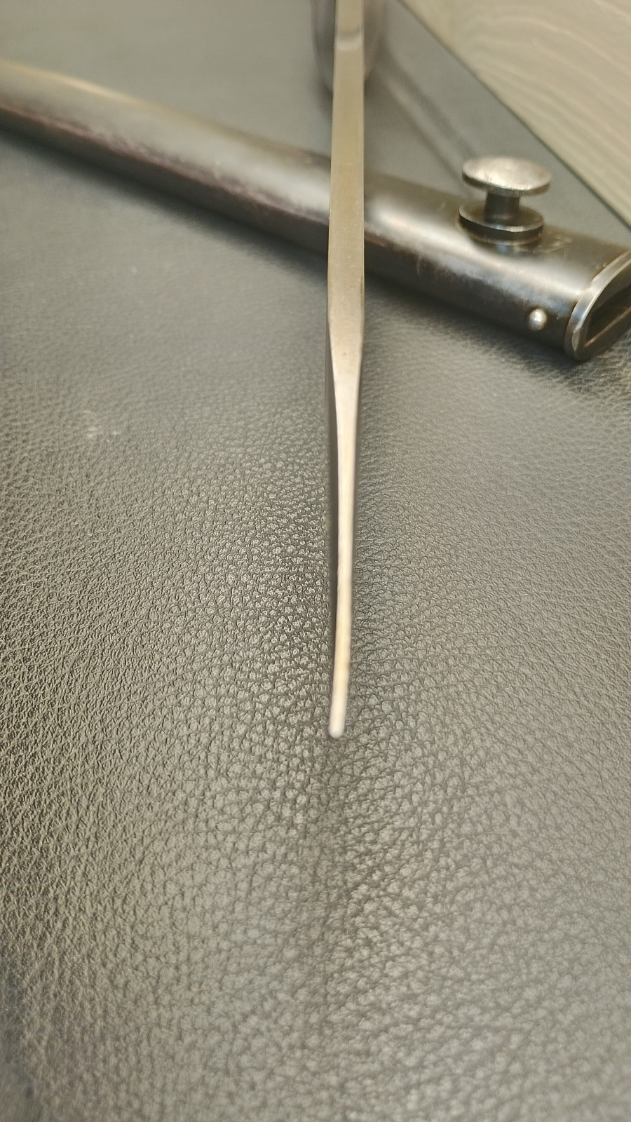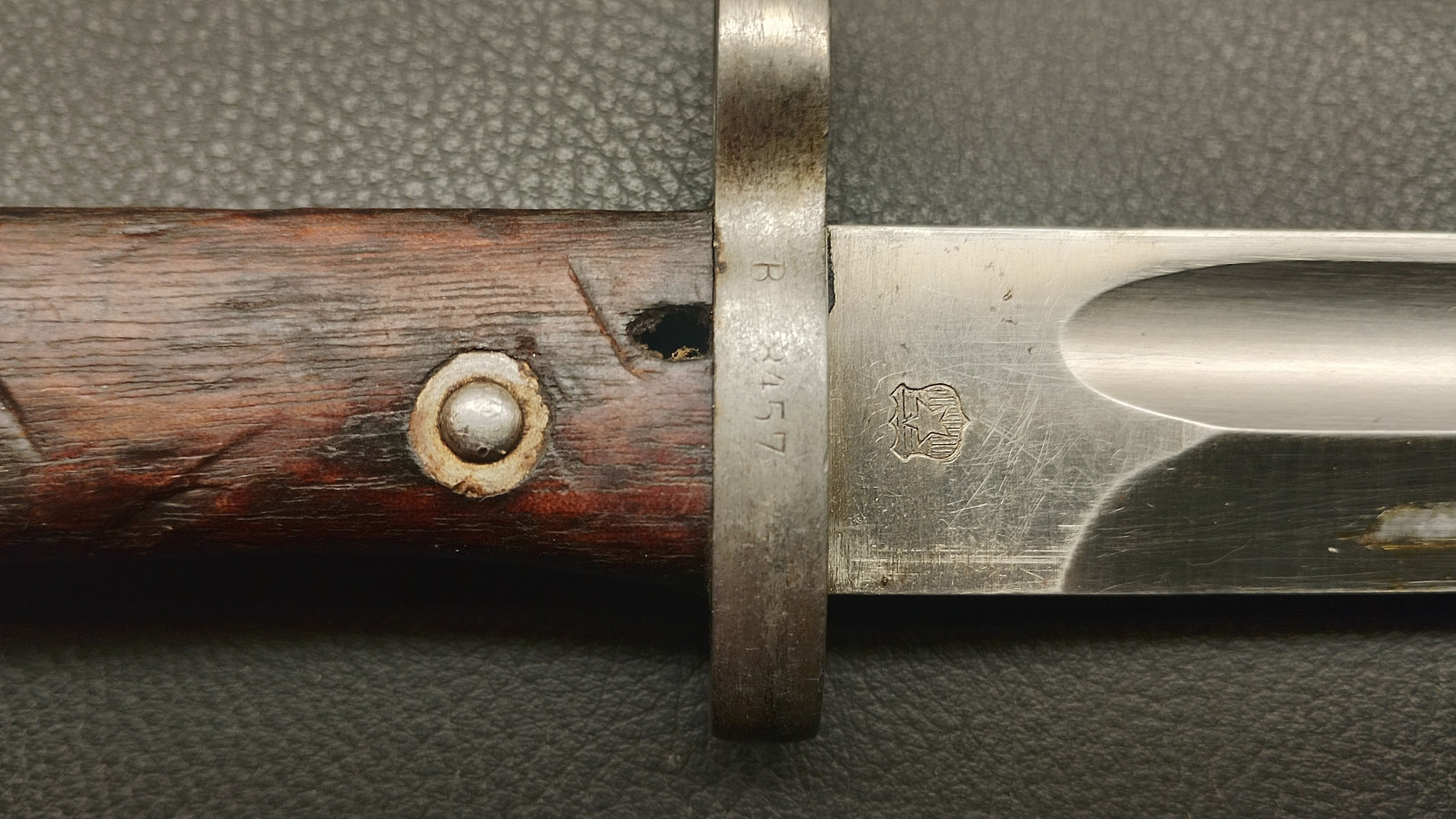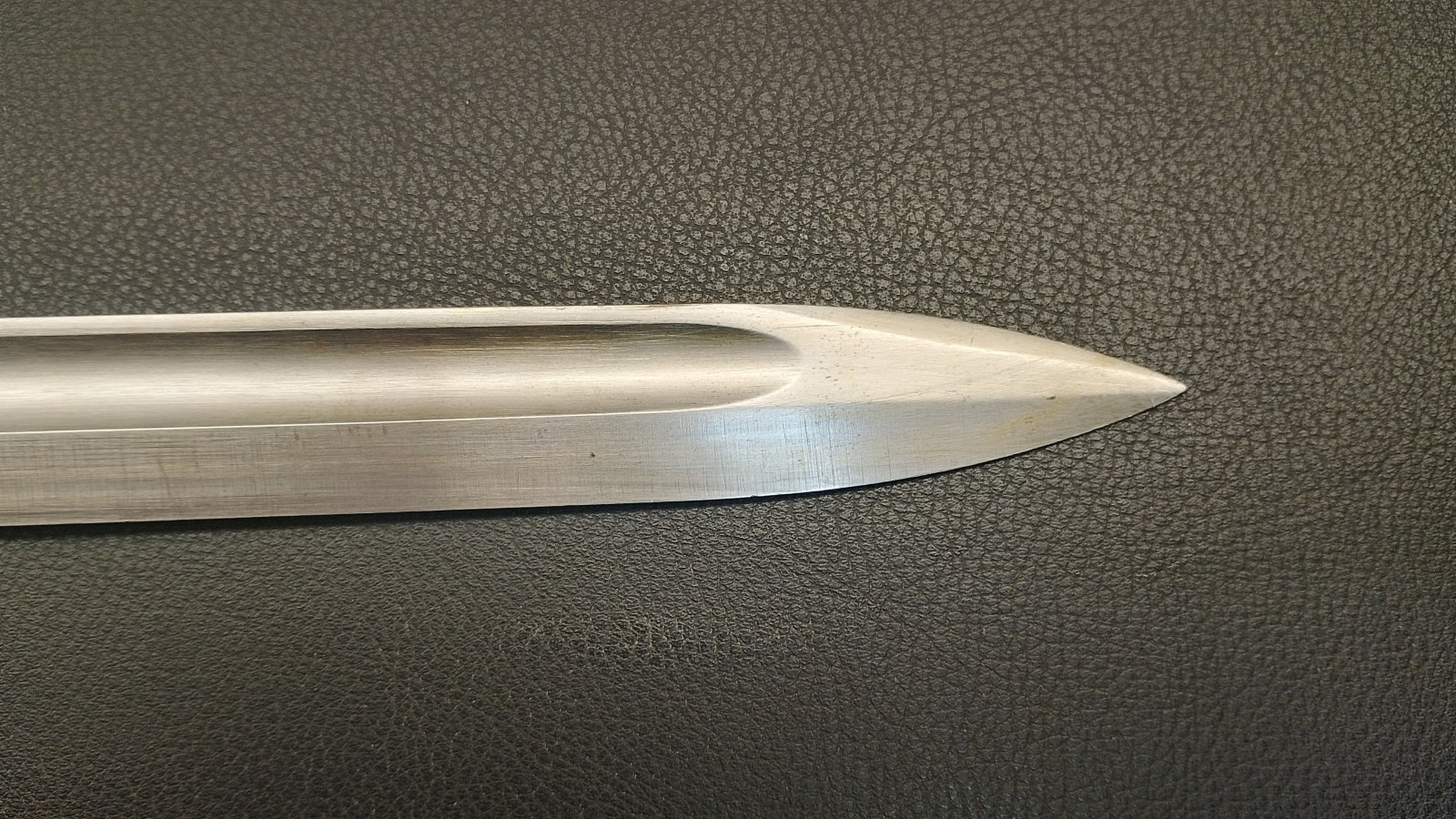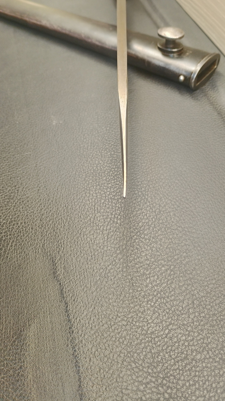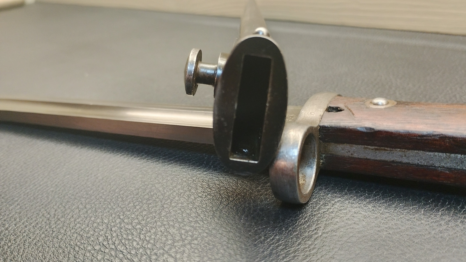 Verkaufe aus meiner Sammlung : Chile Bajonett Mauser 1912 ; Klingenspitze leicht nach rechts gebogen siehe Bilder ,Ich habe versucht es bestmöglich zu fotografieren ; Klingenlänge ca 25 cm ; Gesamtlänge ohne Scheide ca 38,5 cm ; Klinge mit OE WG . Erhaltungszustand ist Ansichtssache . Bitte schätzen Sie den Zustand des angebotenen Artikels anhand der Bilder selbst ein . Bilder sind Gegenstand der Auktion ,,,,,,,,,,,,,Viel Spass beim Bieten