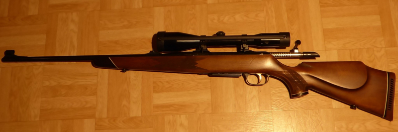 3-schüssiges Stahl-Magazin sowie einen fein einstellbaren Einabzug mit Rückstecher. - Gegebenenfalls wird die Waffe auch ohne ZfR. und ohne die Ringe verkauft (Minderpreis in diesem Fall € 300,--). -