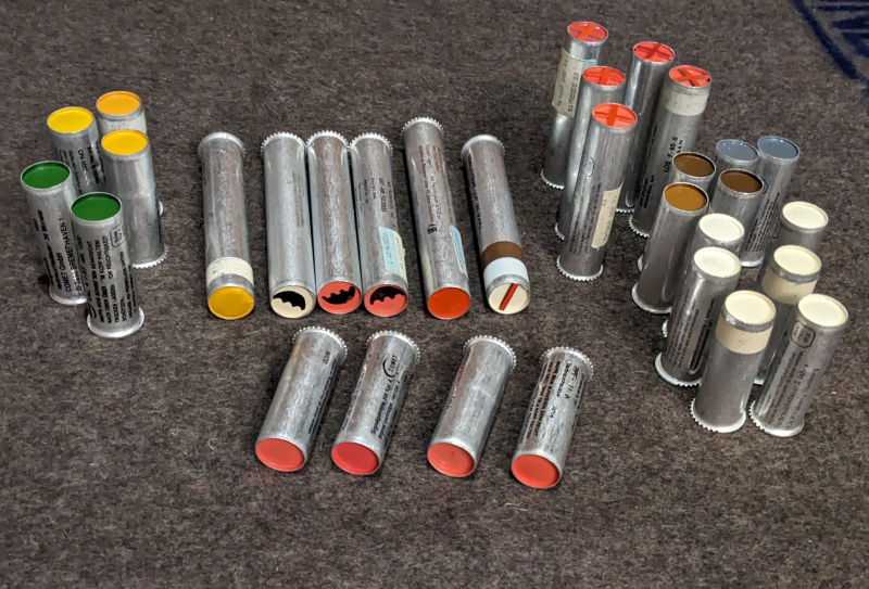 5xKnallpatrone; 3x Fallschirm rot; 1x Fallschirm weiß; 1x Fallschirm gelb; 5x Mehrstern rot; 6x Kugel weiß; 4x Kugel rot; 3x Kugel gelb; 2x Kugel grün; 1x Mehrfachsignal (Schall, Rauch und Licht zusammen)