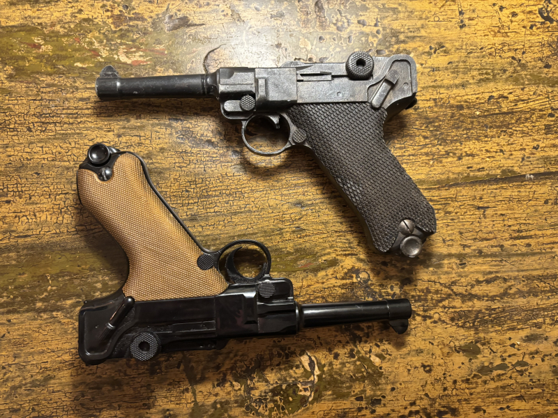 Biete hier 2x P08 eine davon ist eine geairbrushte vollplastik attrape die bei Tageslicht um einiges authentischer aussieht, eventuell für Reenactment etc, die andere ist eine Kinder softair unter 0,1 Joule.