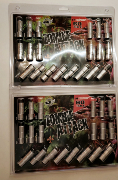 Sie ersteigern hier je kauf **2x Zombie Attack Sets/Blister** mit insgesamt 120 Signalsternen mit 14 verschieden farbvarianten von der Firma ABA.
