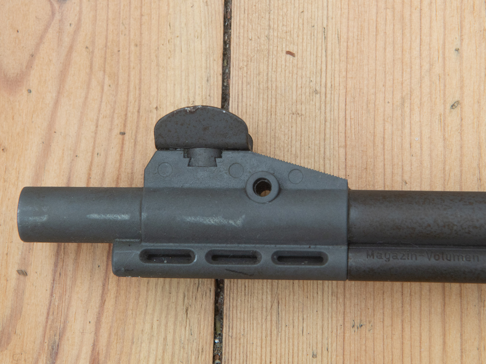 Ebenfalls zu erwähnen ist eine nachträglich angefertigte Zielfernrohr-Vorrichtung. Dies habe ich auch im Foto festgehalten.