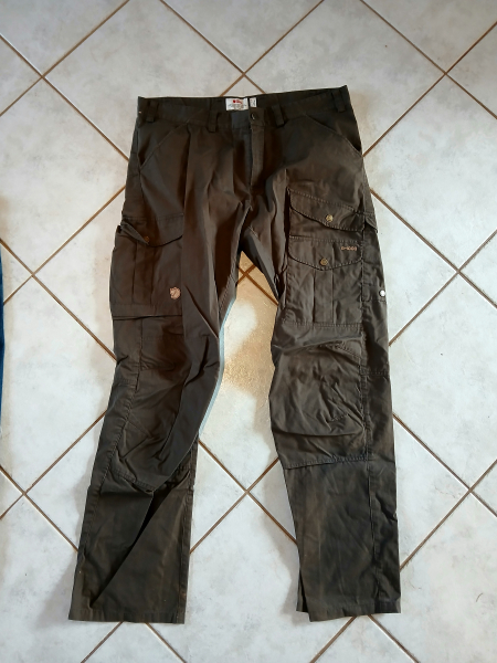 Es sind ein paar Flecken vorhanden (Baumharz) welche durch die Wäsche nicht mehr entfernt werden konnten. Ansonsten befindet sich die Hose in einem guten Zustand.