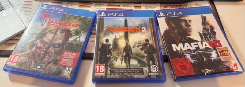 Zum Verkauf steht ein PS4 Spiele-Set bestehend aus drei neuwertigen Titeln, alle vollständig, sehr gut erhalten und funktionstüchtig. Perfekt als Geschenk oder zur Erweiterung der eigenen Spielesammlung.