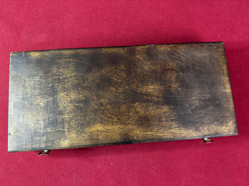 Es handelt sich hier um eine Hege Holzbox für Vorderladerwaffen mit original roter Innenausstattung.