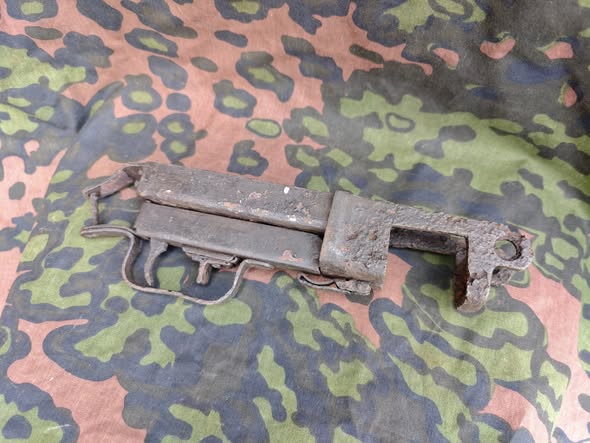 Zum Verkauf steht ein PPSh-41 Verschlussträger (Schlittengehäuse) mit Abzugsmechanik, als Bodenfund aus dem Zweiten Weltkrieg.