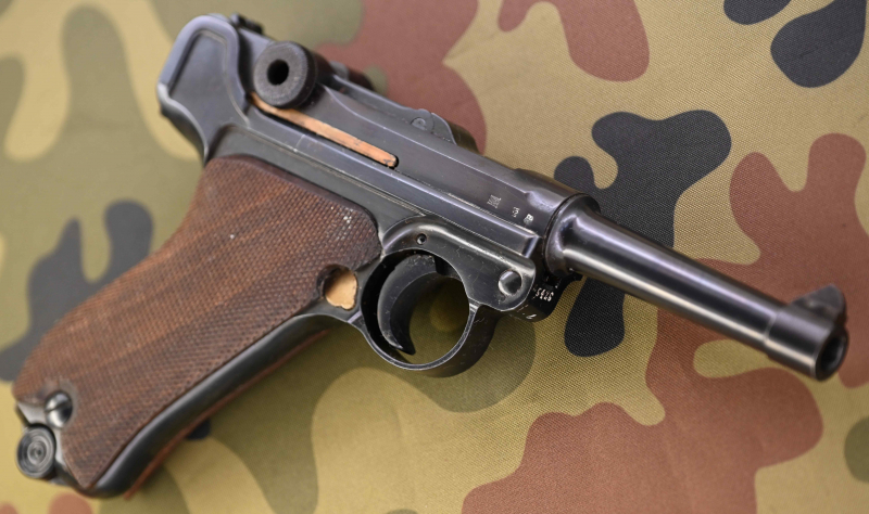 Nummerngleiche, vor längerer Zeit einmal leicht überarbeitete Selbstladepistole, Pistole, Ordonnanzpistole, Armeepistole, Dienstwaffe, Militärwaffe