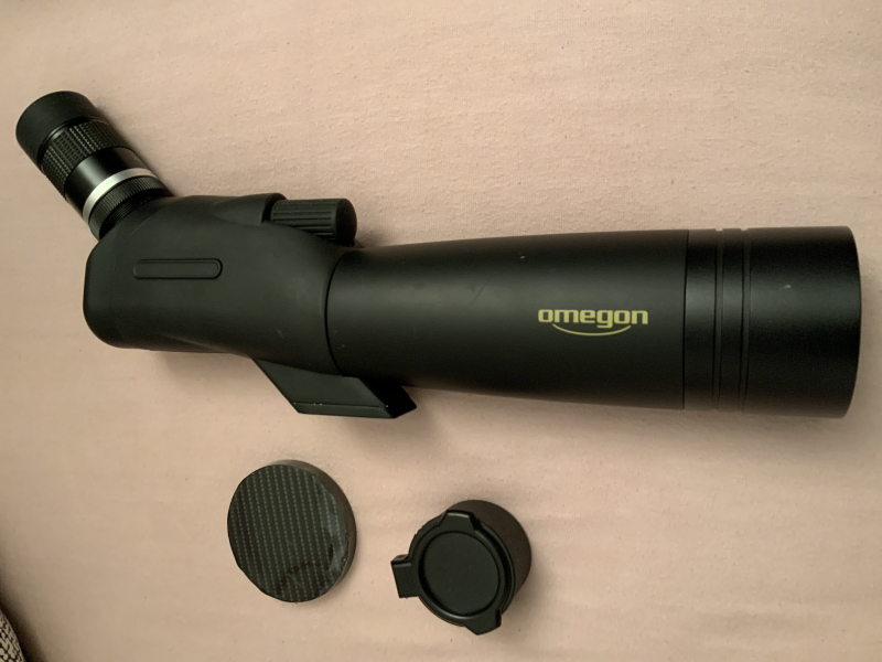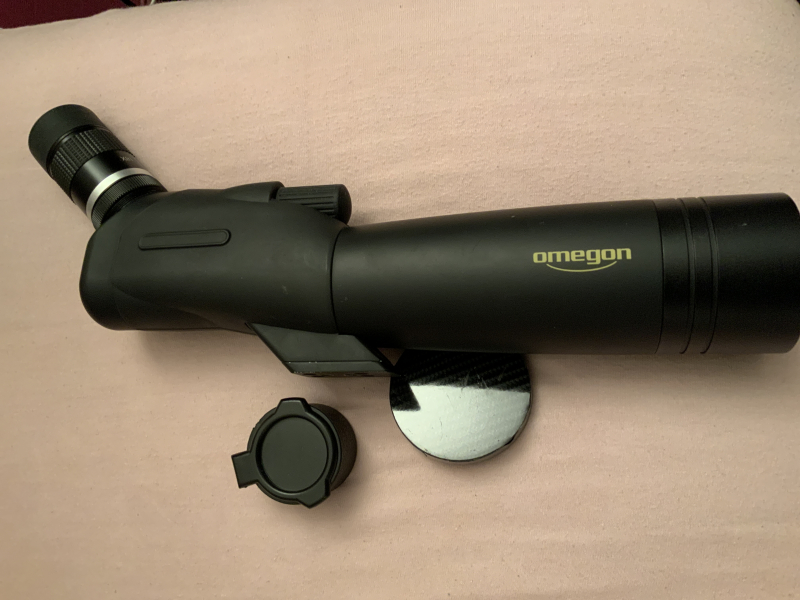 18 fache Vergrößerung, Fabrikat Omegon ST18-54-55A, D=55mm, F=380mm,Okular 45 Grad.