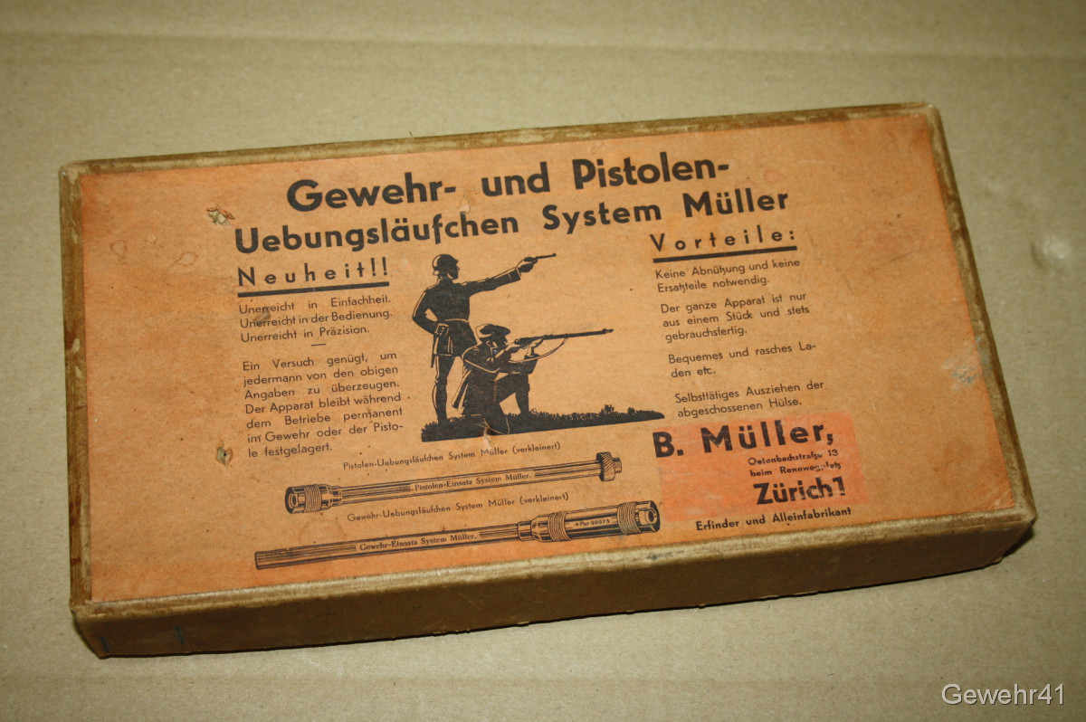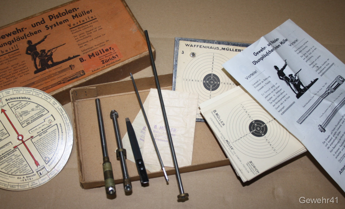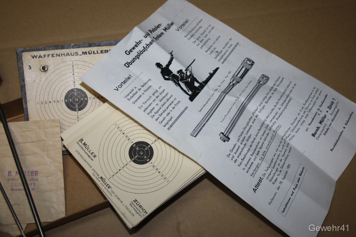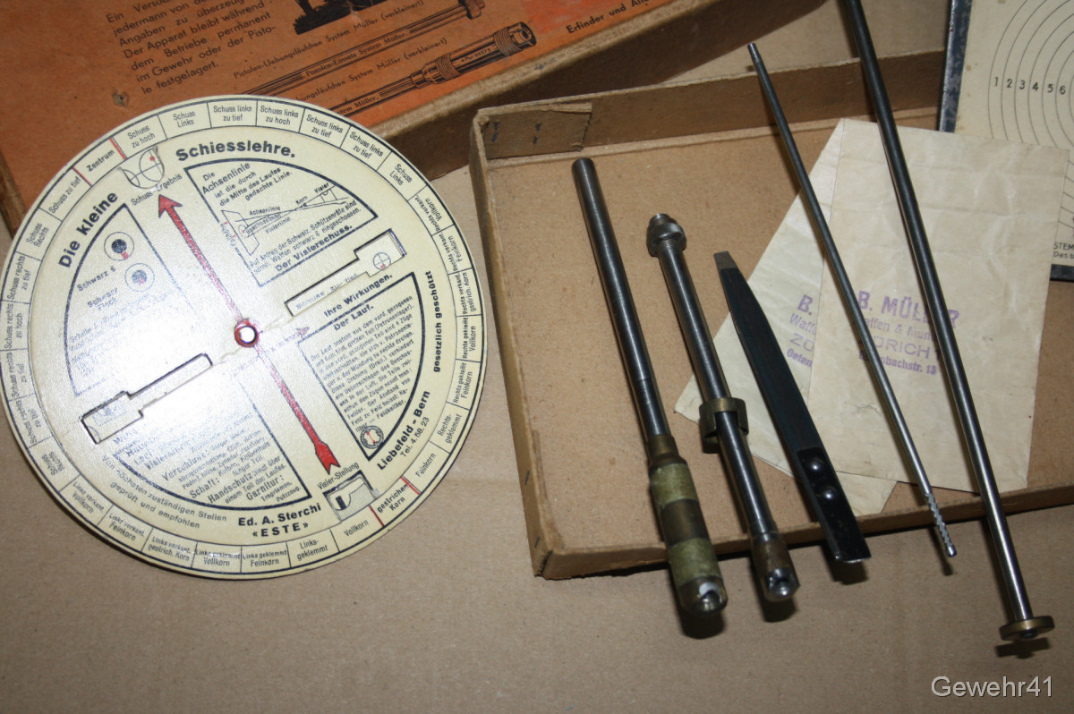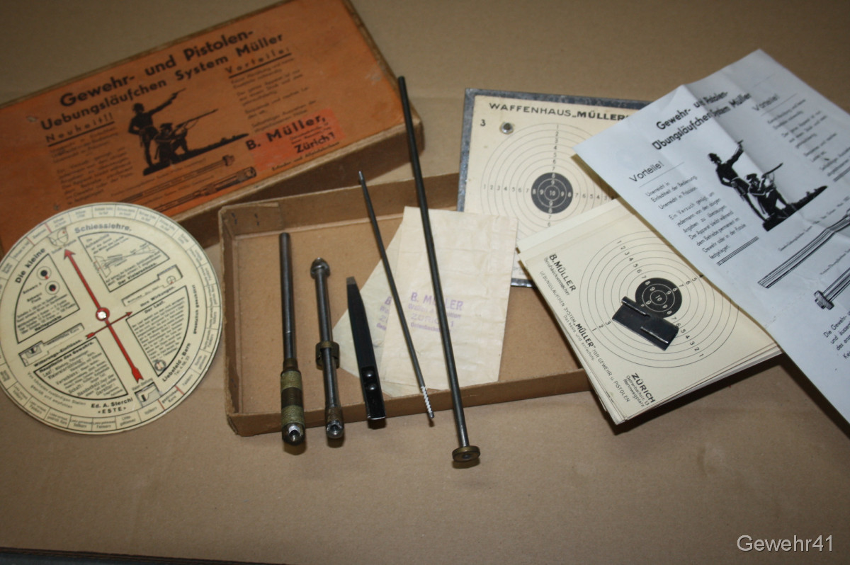 Seltenes Schweizer Einsteckläufchen im Kal. 4mm. Komplett in Schachtel mit Zubehör.