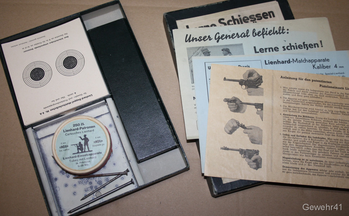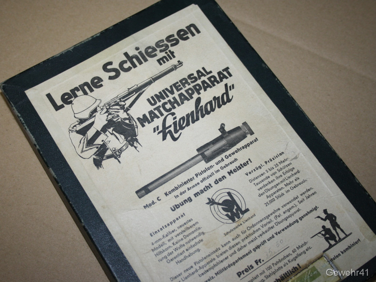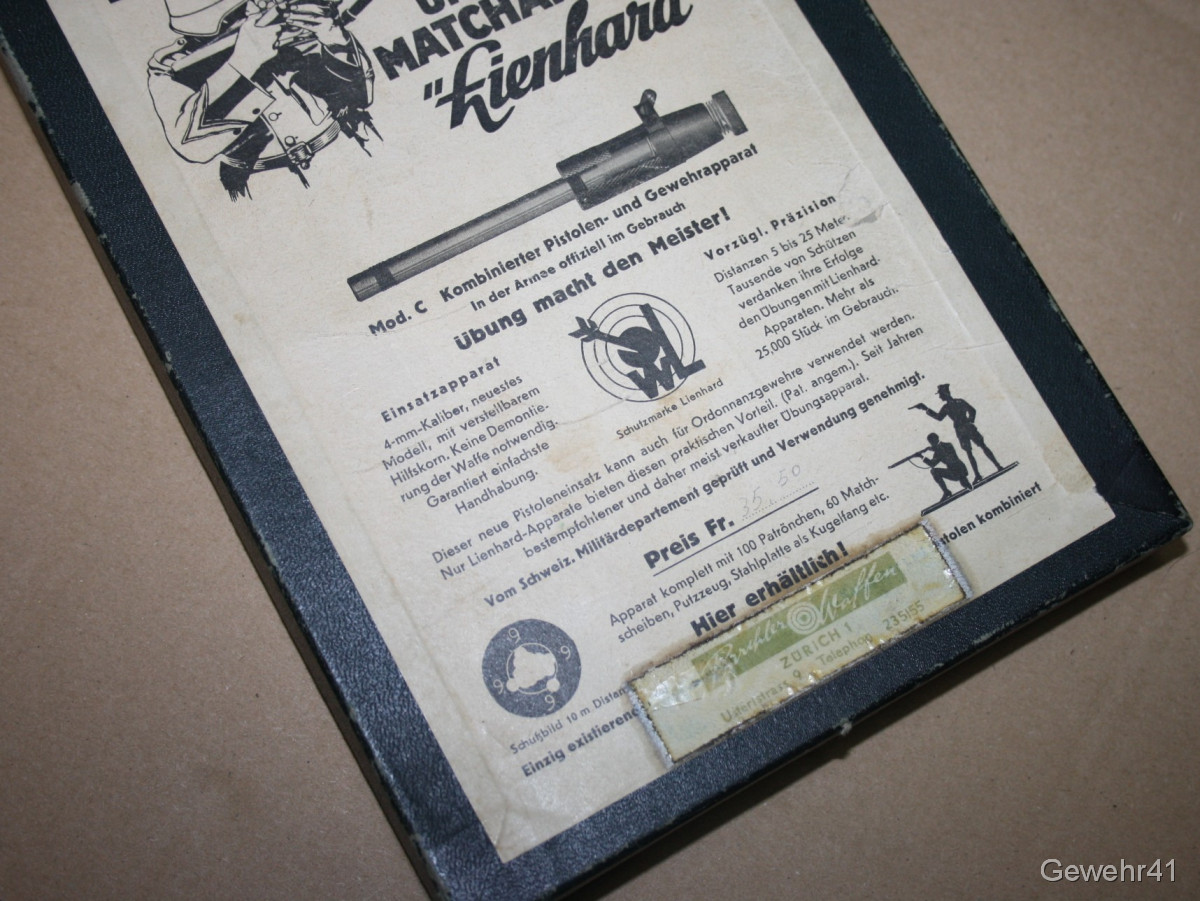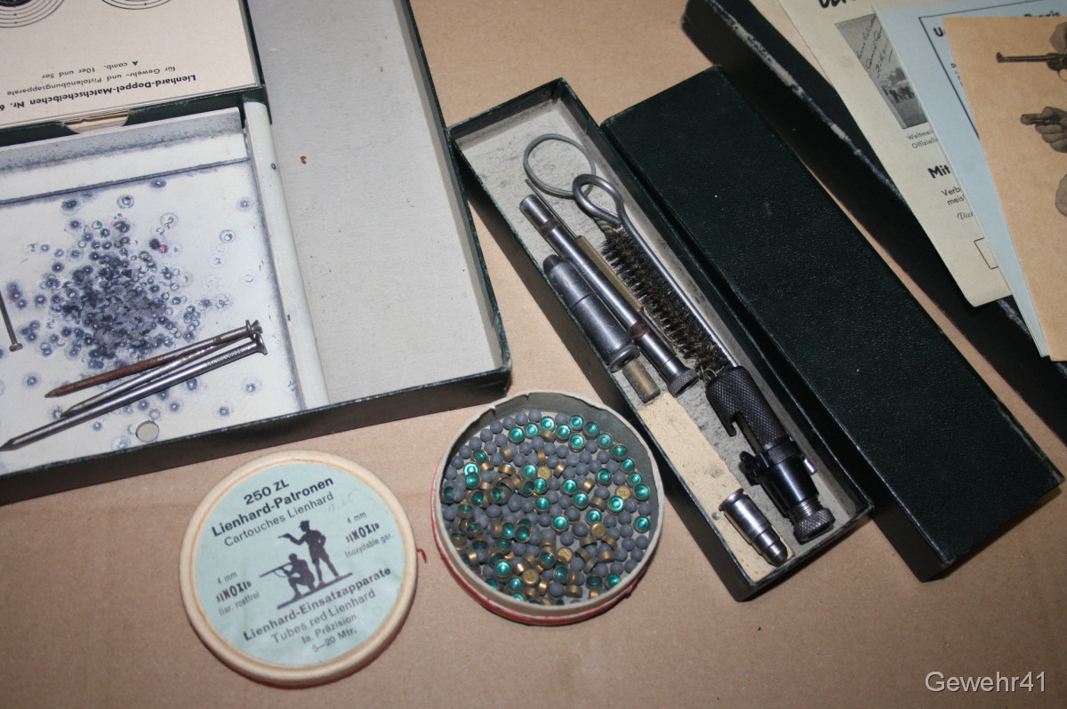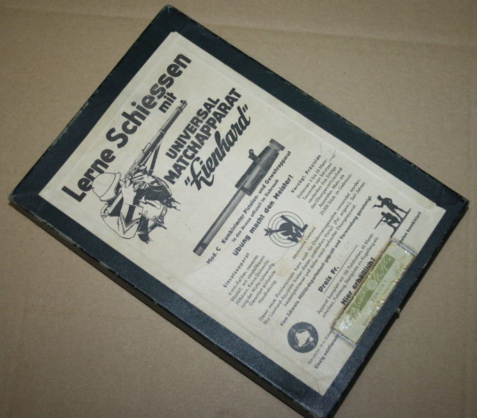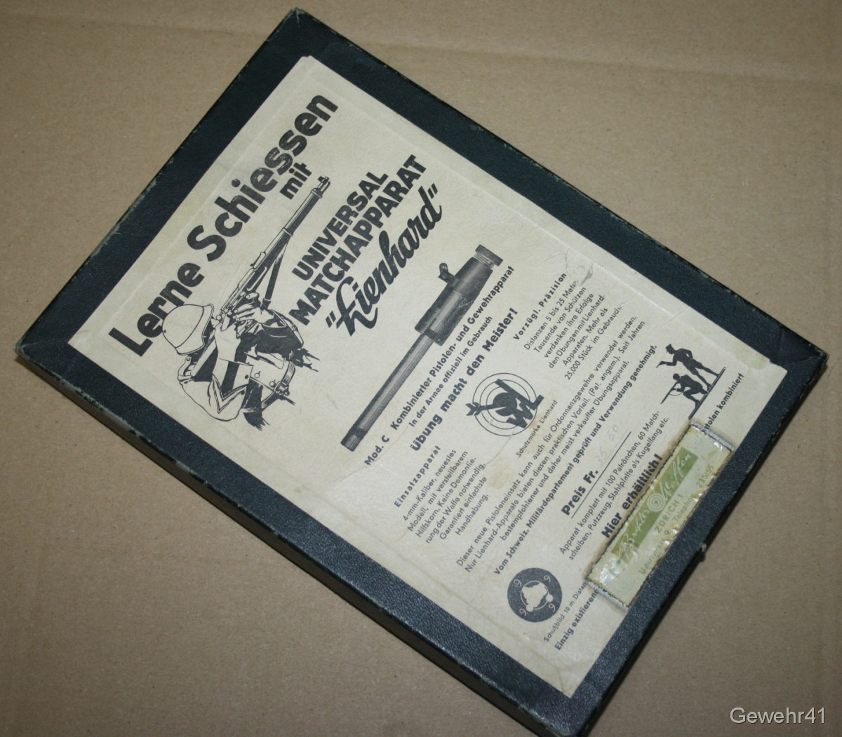 Seltenes Schweizer Einsteckläufchen im Kal. 4mm. Komplett in Schachtel mit Zubehör.
