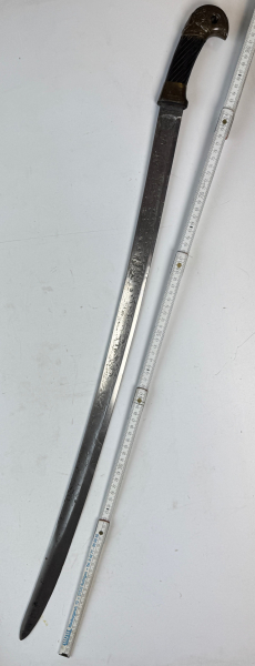 UdSSR Schaschka, auf der Klinge beidseitig Hersteller bzw. Truppenstempelung, ohne Scheide, Gesamt-Länge ca. 95cm., Klingen-Breite: ca. bis zu 30mm., mit leichten Altersspuren, gebrauchtes Stück.