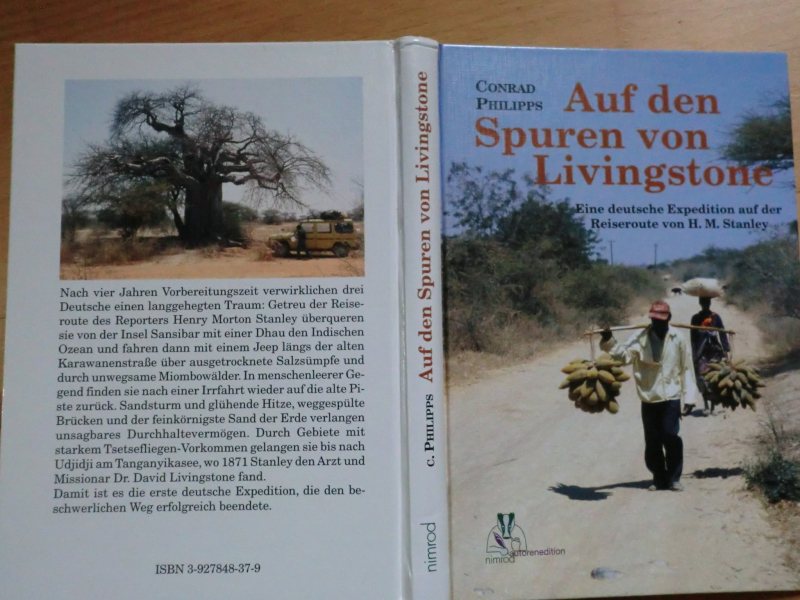 AUF DEN SPUREN VON LIVINGSTONE - Eine deutsche Expedition - von Conrad Philipps, Nimrod Verlag 2003, 232 Seiten mit sehr vielen Abbildungen und einer Doppelkarte - Inhalt u.a.: Vorbereitung / In der arabischen Welt / Auf der Gewürz- und Nelkeninsel / Auf dem afrikanischen Festland / Im fernen Westen Tansanias / Weiter auf Stanleys Spuren / und vieles andere mehr - Guter bis sehr guterZustand