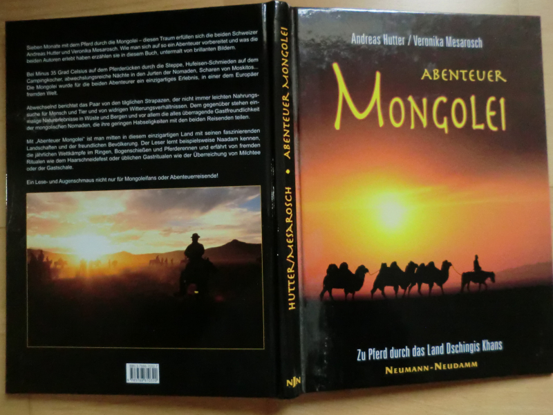 ABENTEUER MONGOLEI - Zu Pferd durch das Land Dschingis Khans - von Andreas Hutter und Veronika Mesarosch, Verlag Neumann-Neudamm 2006, 130 Seiten mit sehr vielen farbigen Abbildungen - Inhalt u.a.: Von Träumen und Ideen / Damit der Traum nicht zum Albtraum wird / Naadam - die mongolische Olympiade / Salamalekem, wir würden gern Pferde kaufen... / Durch das Altai-Gebirge / Durch die Wüste Gobi / Der gefrorene Fluß / und anderes mehr - Guter bis sehr guterZustand