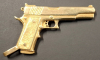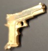 Pistole Peters Stahl Modell Master Kal. 45 ACP, 6 Zoll Lauf, wurde von einem Goldschmied dem Original nach gebaut. Der Anhänger ist gestempelt mit 585 und hat ein Gewicht von 23,5 Gramm. Die Länge ist 4,5cm, die Höhe 2,5cm Der Startpreis ist der momentane Goldpreis. Die Herstellung hat mich das Doppelte gekostet. Ein sehr schönes Stück !