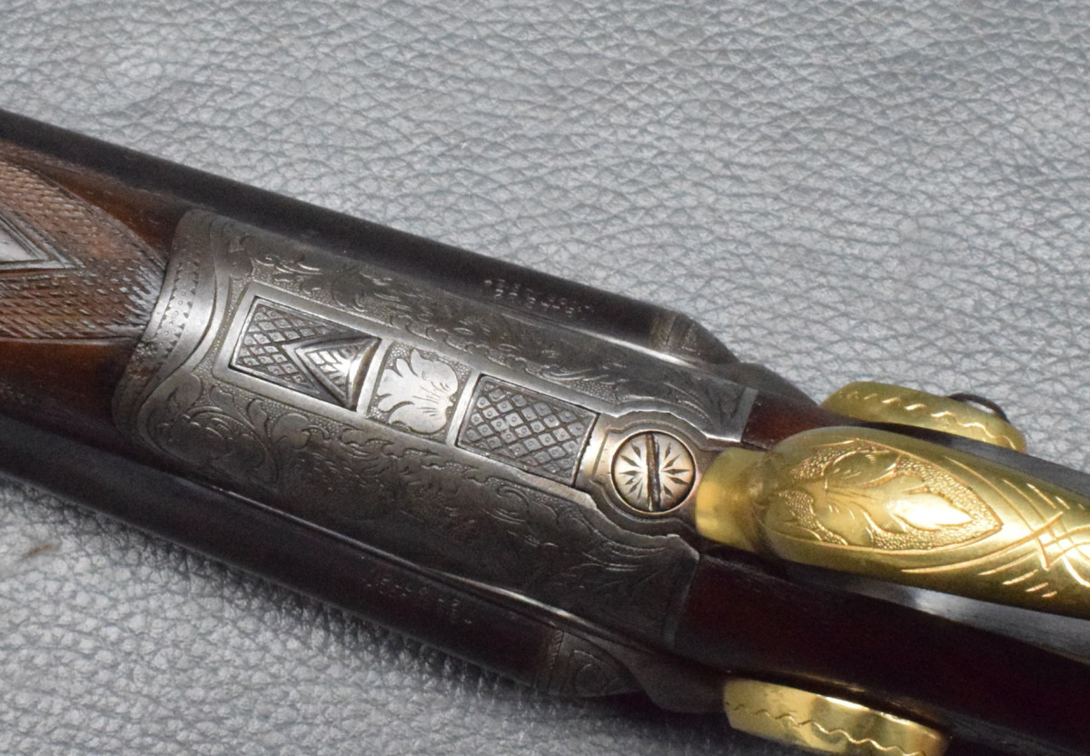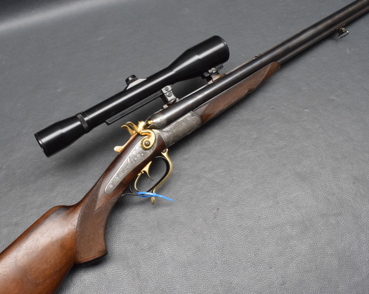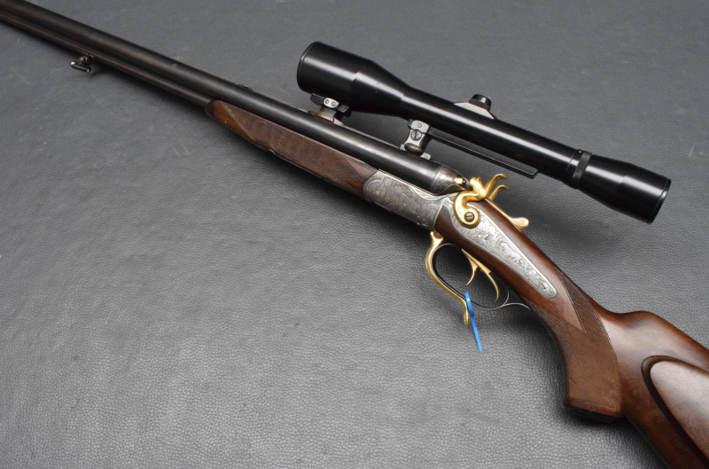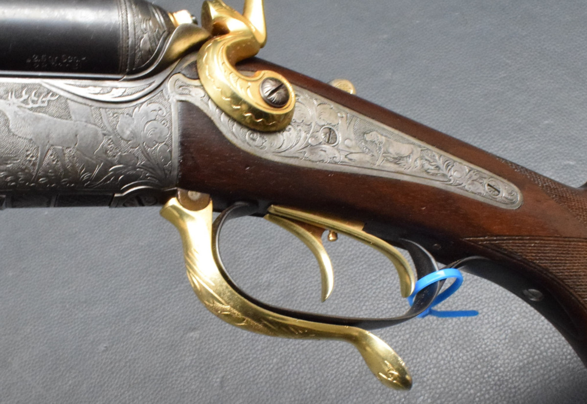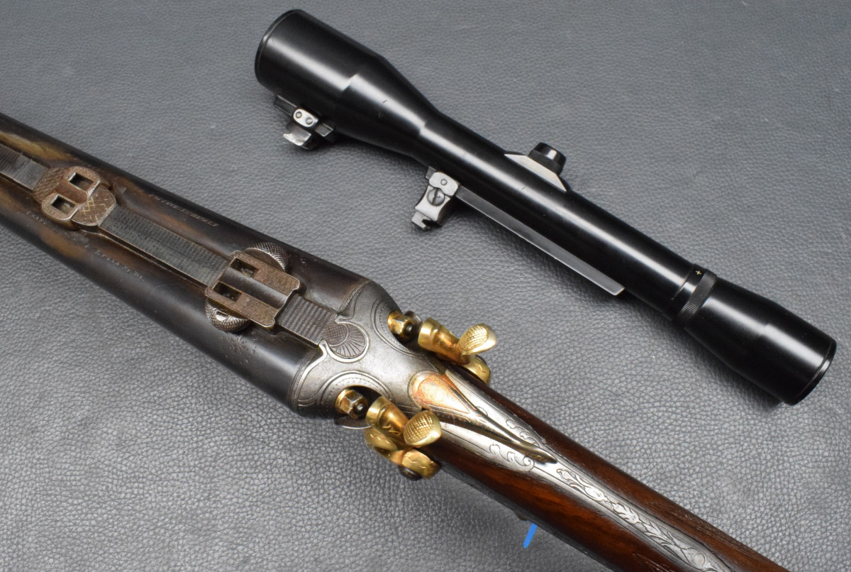 Laufbündel mit Klappvisierung, , einstellbarer Rückstecher für den Kugellauf, vergoldete Bedienteile,