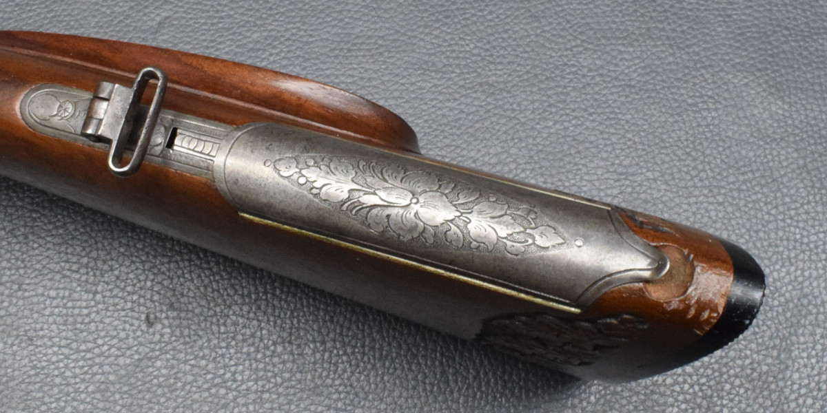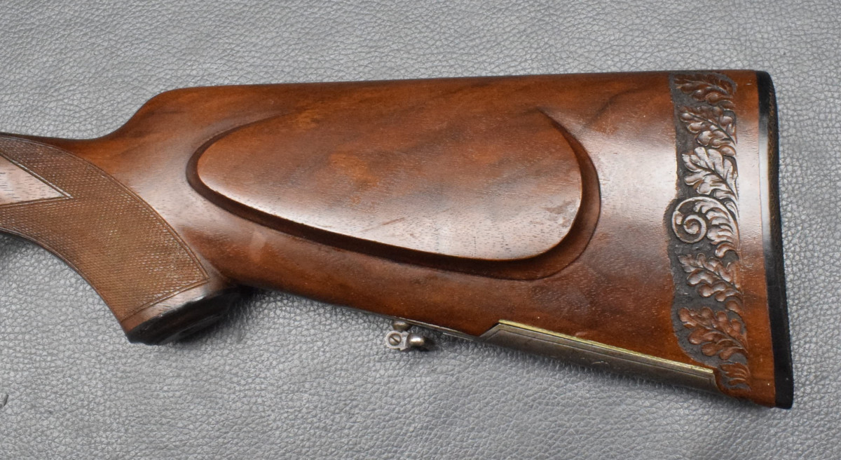 gravierte Stahlbasküle, Stahlabzugsbügel graviert und vergooldet, Umschalter auf dem Kolbenhals,