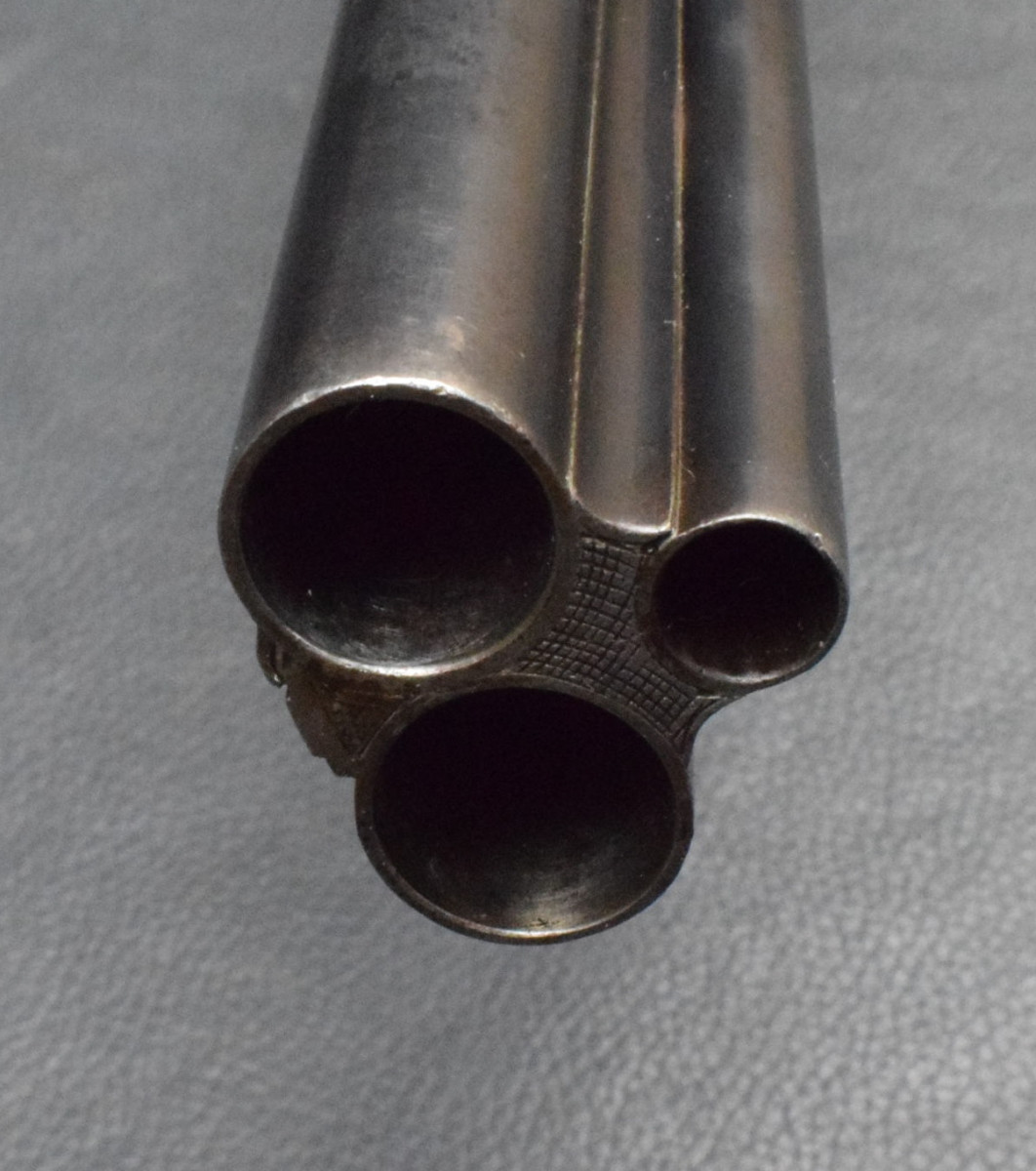 Läufe innen Narbig, Verschluss dicht, Brünierung 93%, Schaft gut.