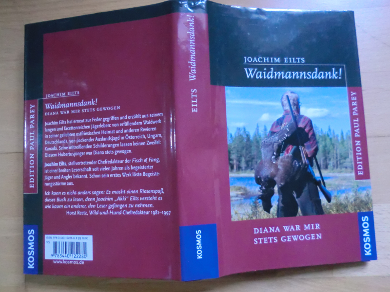 WAIDMANNSDANK! - Diana war mir stets gewogen - von Joachim Eilts, Edition Paul Parey - Franckh-Kosmos Verlag Stuttgart 2011, 256 Seiten mit vielen farbigen Abbildungen - Inhalt u.a.: Braune Bären und ein schwarzer Hahn / Der schönste Fuchs meines Lebens / "Black and White" / Damals in der Steiermark / Einmal Namibia, immer Namibia / Rot auf Weiß / Wenn Hirsch kommen, du schießen! / Blattzeit / Die Kollegeensau / Treibjagd / Schwein gehabt / An der Kirrung / Silbermond und schwarze Klumpen / und vieles andere mehr - Guter bis sehr guter Zustand