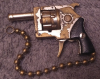 Sie bieten auf einen der gesuchten Xythos Revolver, dem kleinsten schußfähigen Revolver, welcher in Serie hergestellt wurde! Kaliber 2 mm Knall mit Stiftzündung. Dieses Revolver-Modell wurde von der kleinen österreichischen Uhrenmacher-Firma Andres & Dworsky in Uhrmacher-Qualität in Handarbeit hergestellt! Leider wird dieses Qualitätsprodukt seit einigen Jahren nicht mehr produziert. Ein gesuchtes, ungewöhnliches Stück. Double Action Abzug, 6 Schuß Trommelkapazität, Kipplaufmechanismus zum Laden, keinerlei Laufsperre! Baureihe mit PTB-Abnahme (PTB82), diese Schmuckausführung trägt aber keine PTB-Stempelung! Gegenstand der Auktion ist nur der Revolver, so wie er abgebildet ist, ohne weiteres Zubehör! Ausführung ohne Gewinde für einen Zusatzlauf.