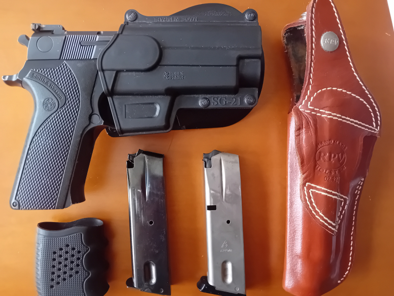 Zuverlässige, gebrauchte Selbstladepistole zu verkaufen: Smith & Wesson Modell 915 : Alu-Griffstück, Lauf Edelstahl, mit verstellbarer LPA-Visierung, DA/SA Abzug Dazu gibt es: - 2 Magazine, - ein gebrauchtes Lederholster RPV und - ein hochwertiges israelisches Hüftholster Fobus Alles Gebraucht! Verkauf nur an Berechtigte! Berechtigung ist nachzuweisen (z.B. WBK mit gültigem Voreintrag) Barzahlung bei Abholung binnen 2 Wochen nach Auktionsende. Spätere Abholung gegen Vorkasse des Gebotsbetrages, z.B. wenn der Voreintrag noch fehlt.