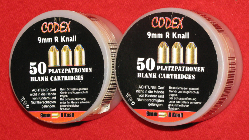 Zum Verkauf kommen 2 volle Packungen CODEX Cal. 9mm R Knall Platzpatronen