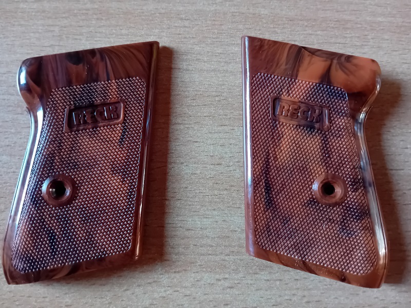 Griffschalen für Reck Schreckschusspistole. Keine Ahnung, welches Modell. evt. PK 800. Bei einer Schale fehlt die Schraube.