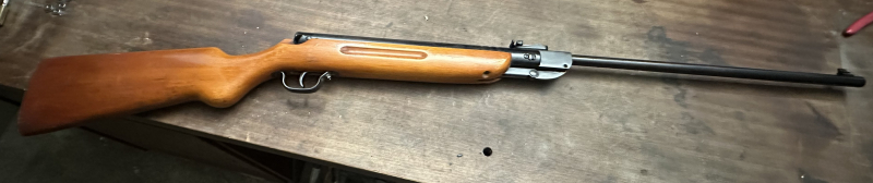 Zum Verkauf steht ein Knicklaufluftgewehr der Firma Haenel (Suhl) aus der DDR. Das Gewehr hat kein F-Zeichen (vor der Wiedervereinigung in der DDR hergestellt), darf aber trotzdem ab einem Alter von 18 Jahren frei erworben werden.