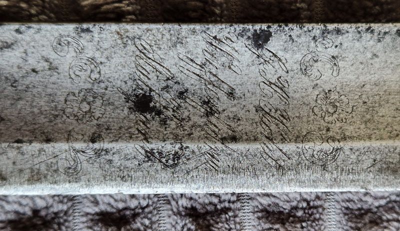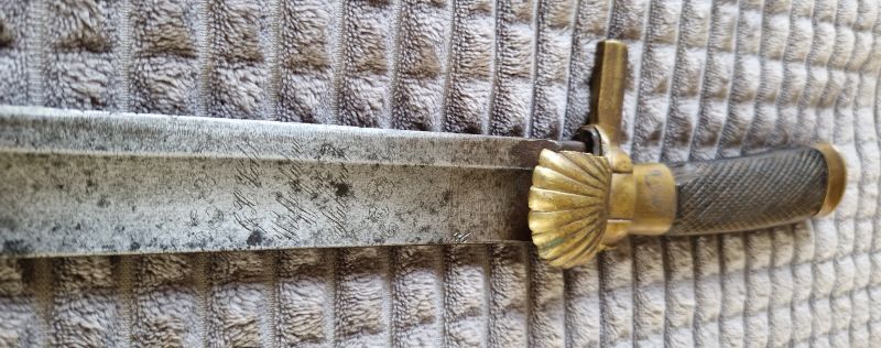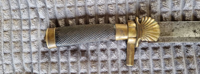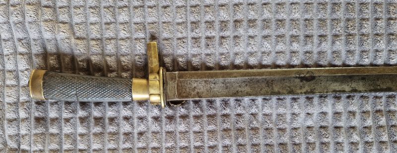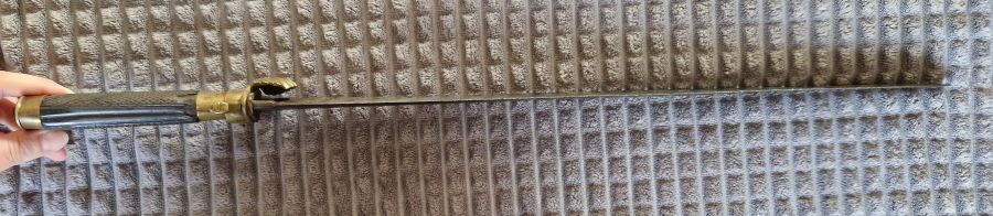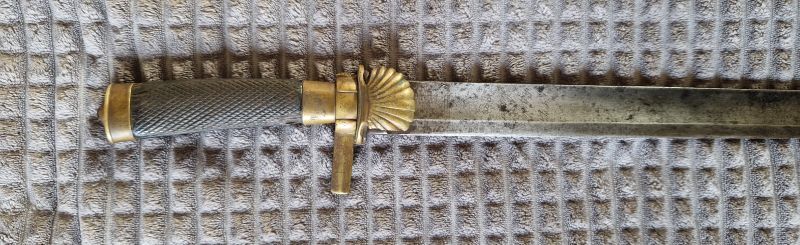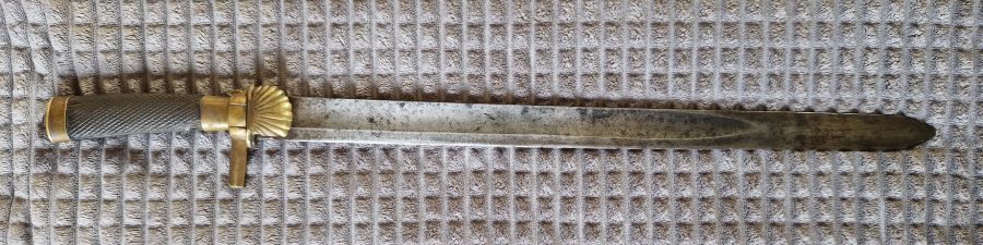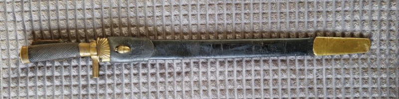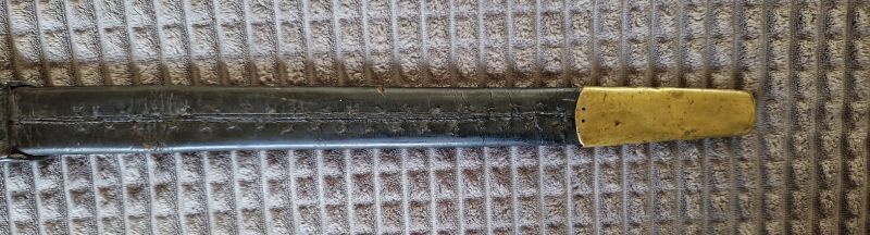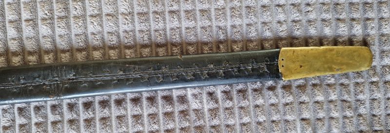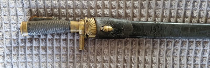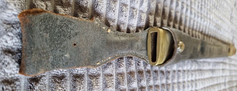 Scheide mit Mund- und Ortblech. Anhängendes Koppel.