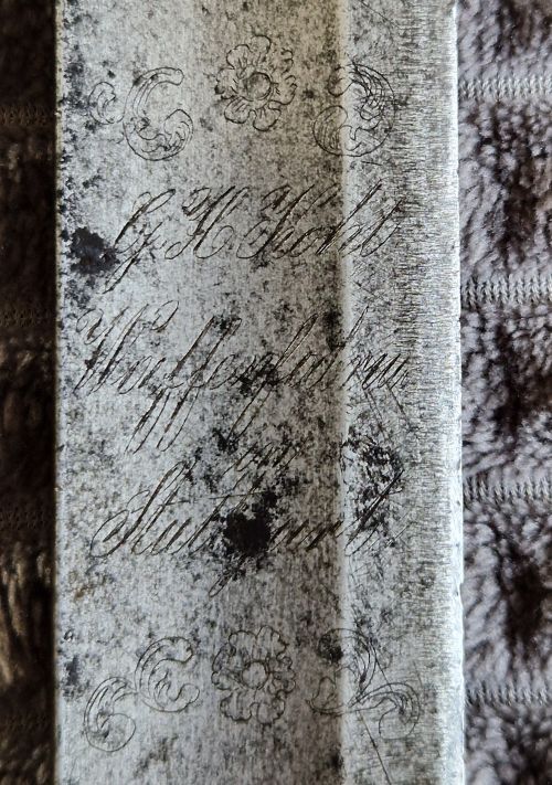 Hirschfänger (G.H. Kohl Stuttgart) 19.Jh. Scheide, Koppel, beschädigt.