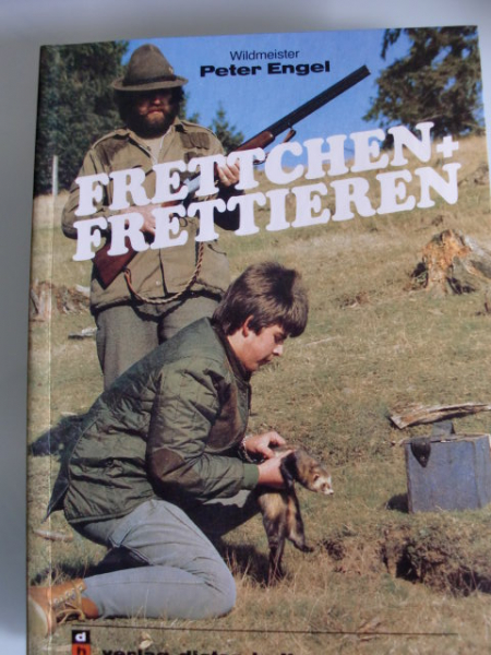 FRETTCHEN + FRETTIEREN - von Wildmeisteer Peter Engel, Verlag Dieter Hoffmann, Mainz 1996, 92 Seiten mit sehr vielen Abbildungen und verschiedenen Konstruktionszeichnungen - Inhalt u.a.: Abstammung des Frettchens und seine Verbreitung / Haltung des Frettchens / Fütterung / Abrichtung / Das Frettieren / Frettieren mit mehreren Gruppen / Frettieren mit Netzen / Ausrüstung und Bewaffnung / Krankheiten / uam - Sehr guter Zustand