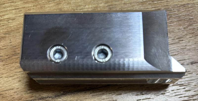 Das Gewicht beträgt ca. 80Gramm und wird mit 2 Inbusschrauben geliefert. Gebrauchsspuren und auf einer Seite leichte fräsrillen siehe Bild
