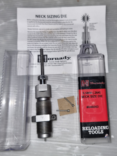 Ich verkaufe eine Hornady Hülsenhals Matrize für das Kal. 6,5 mm ( .264 ) . Die Matrize hat leichte Gebrauchsspuren. Im Lieferumfang sind noch zwei Ersatzstifte und eine Anleitung in Englisch dabei.