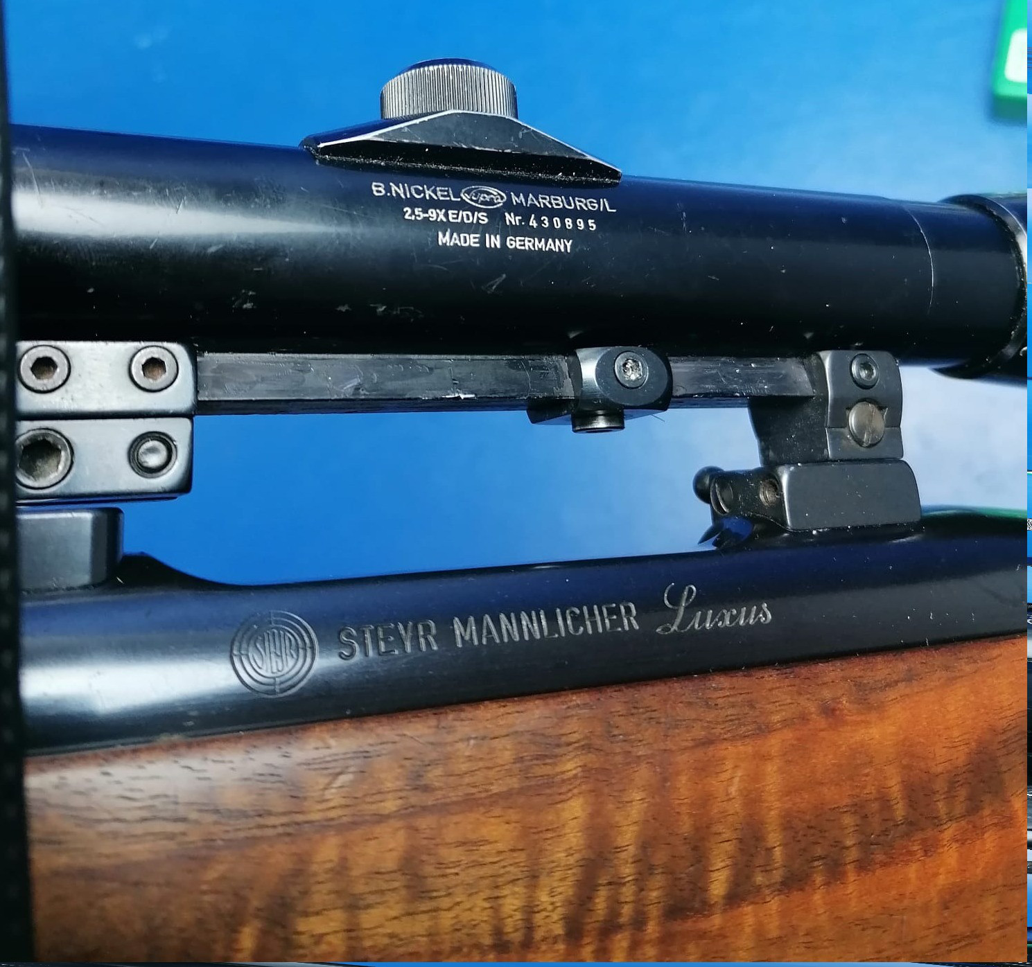 Das Zielfernrohr von B. Nickel aus Marburg/L gehört mit dazu. 2,5-9X E/D/S mit Fadenkreuz.