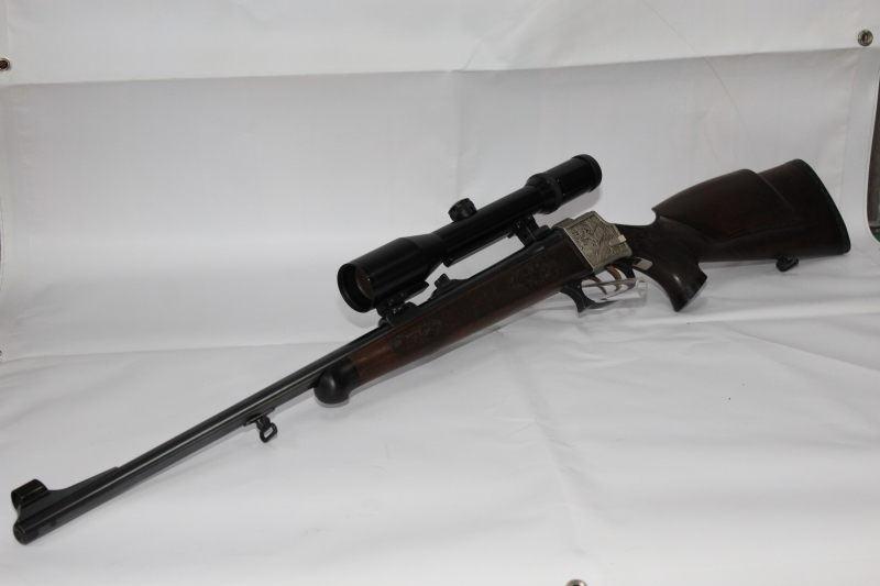 Vor Jahren von mir selbst bei egun von einem Händlerkollegen ersteigert, aber leider bisher noch nicht geschossen, daher wird sie jetzt wieder frei gegeben: Blockbüchse des schweizerischen Herstellers Wüthrich im Weitschußkaliber 5,6x57R. Sehr guter Zustand, Lauf selbstverständlich blank und scharf. Geschmackvolle Schaftverschneidung, leider auf der rechten Hinterschaftseite mit Monogramm (ist eben "second hand"). Kein Rost, Risse oder dergleichen - sonst wäre es natürlich kein sehr guter Zustand ;-) . Auf einer SEM ein dazu passendes Swarovski 2,2-9x42 mit Abs.4. Schaftlänge 36,5cm, Lauflänge 65cm und eine Gesamtlänge von 100,5cm. 3780gramm inkl. ZF. Suchbegriffe; Blockbüchse, Heerenbüchse, Ruger Nr.1, Furtschegger, Outschar, Fraser, Blaser BL820. Gebrauchtware (Differenzbesteuert) - Gewährleistung auf ein Jahr verkürzt gem. Paragraph 476 Abs.2 BGB. AGBs sind Bestandteil des Kaufvertrags. Versand (ausschließlich per Spedition eigenhändig - auch an andere Händler - für 40.- EUR Versandkostenanteil) zahlt Käufer, Abholung möglich. International bidders are welcom if they have a german dealer partner who will take the gun for export.