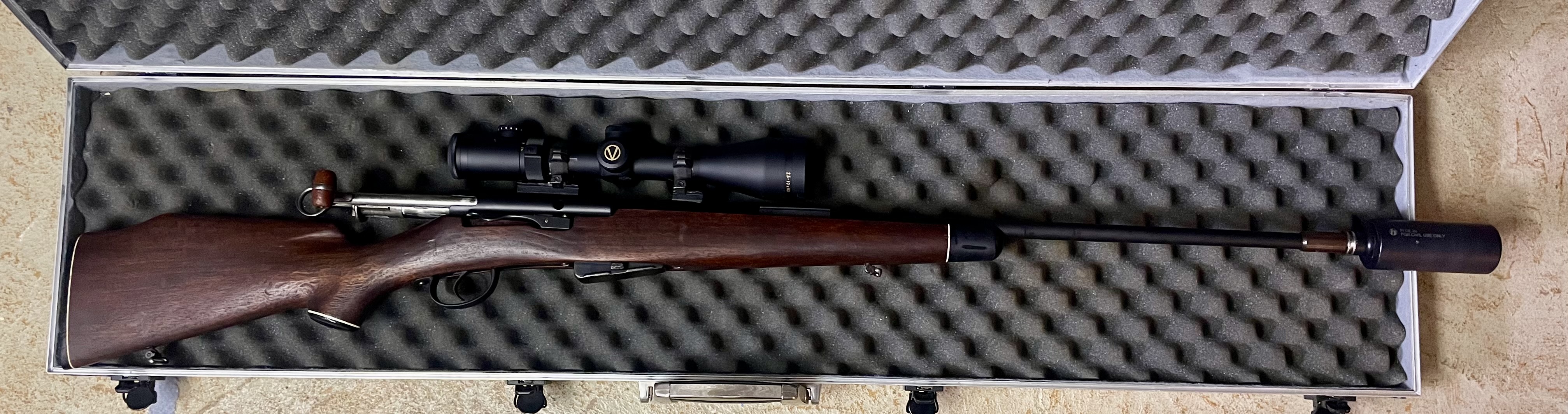 Auf dem einen Bild, auf dem Zielfernrohr und Schalldämpfer nontiert sind, könnt ihr sehen wie ich die Waffe Ausgerüstet hatte. Das ZF, der Schalldämpfer und der Gewindeadapter gehören nicht zur Auktion.