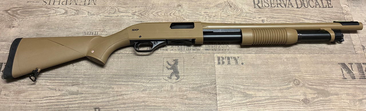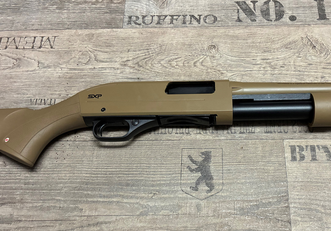 Zum Verkauf steht eine Vorderschaftrepetierflinte SXP Dark Earth Defender aus dem Hause Winchester im Kaliber 12/76.